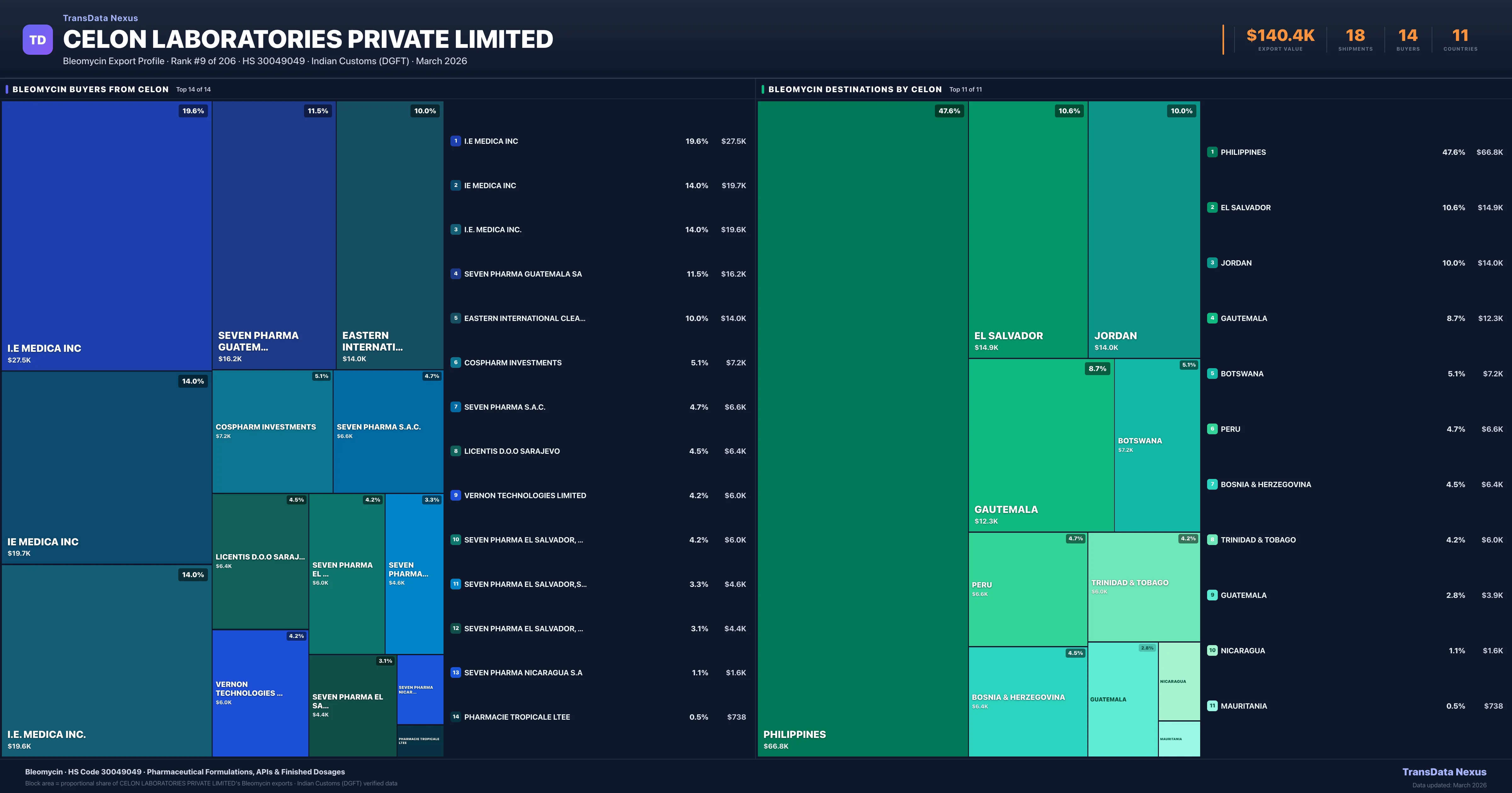 Celon Laboratories Private Limited — Bleomycin Export Profile: Buyers & Destinations