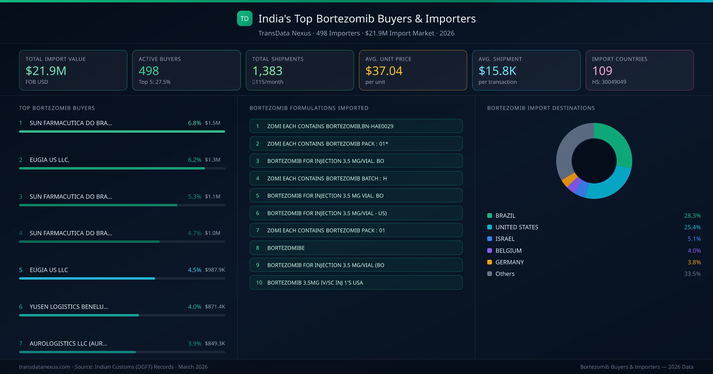 Who Buys Bortezomib from India β 498 Importers Behind a $21.9M Market
