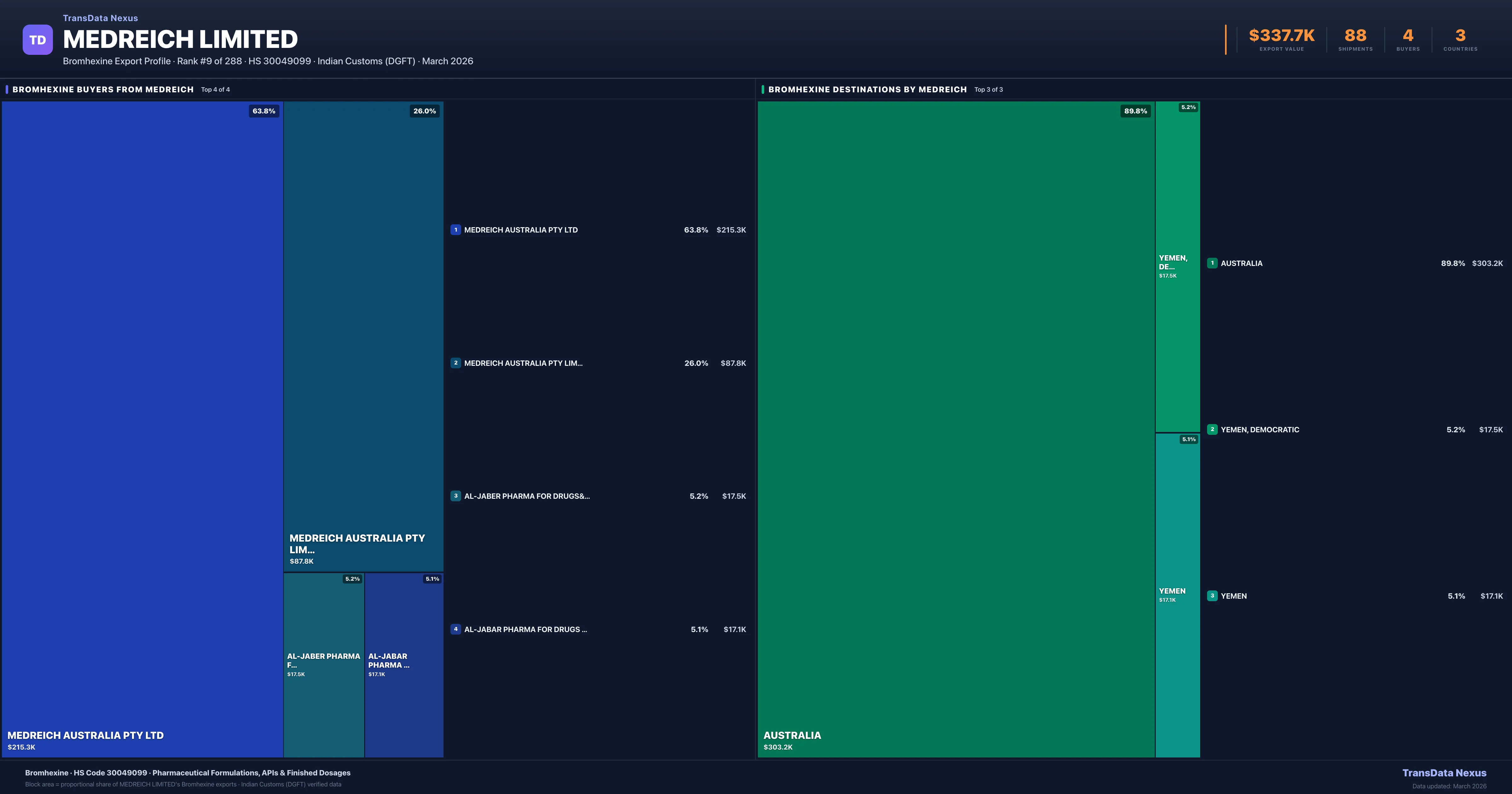 Medreich Limited — Bromhexine Export Profile: Buyers & Destinations