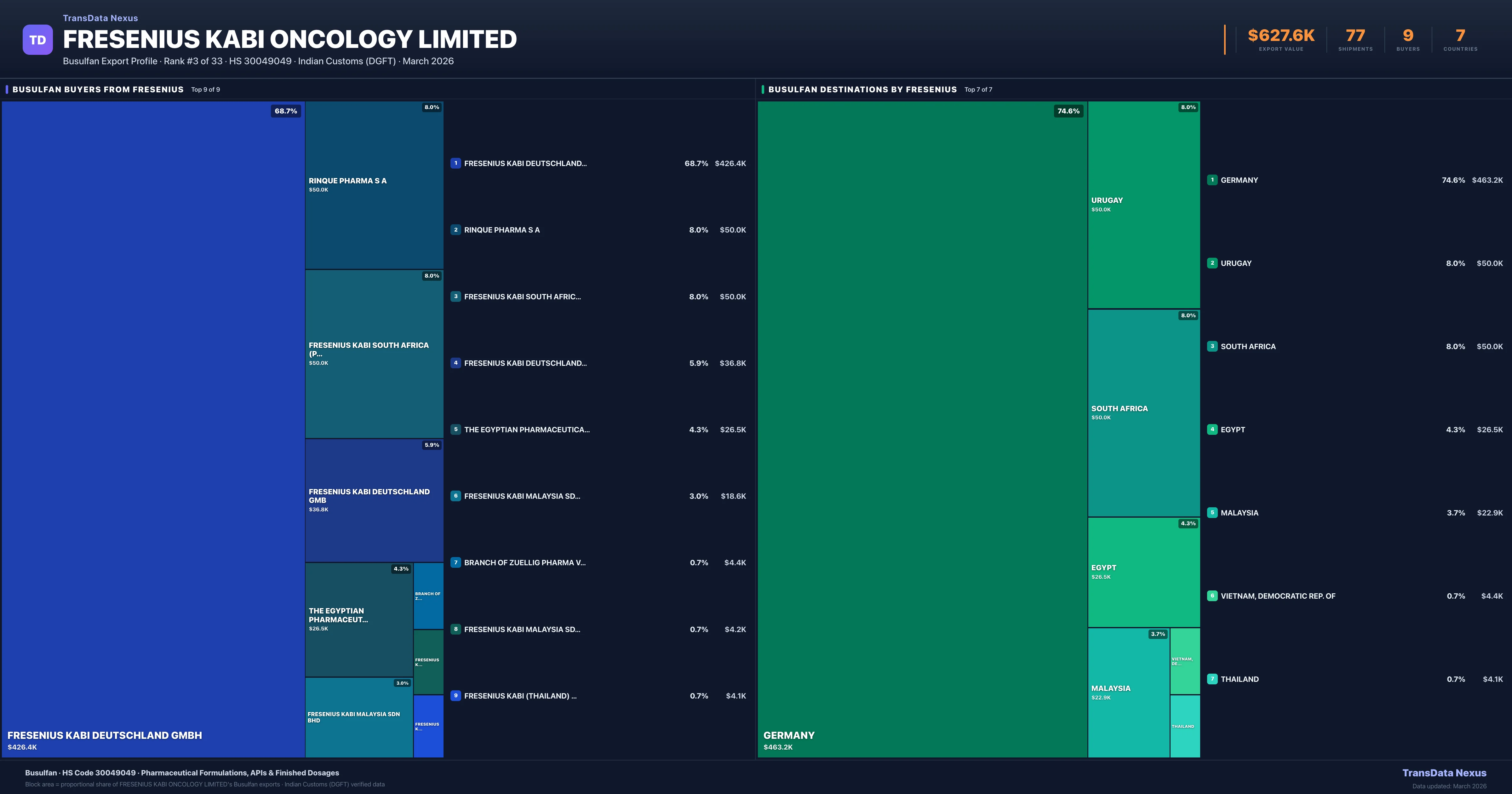 Fresenius Kabi Oncology Limited — Busulfan Export Profile: Buyers & Destinations