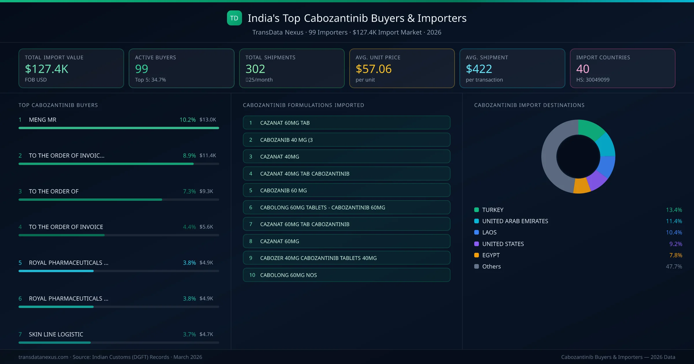 Who Buys Cabozantinib from India โ 99 Importers Behind a $127.4K Market