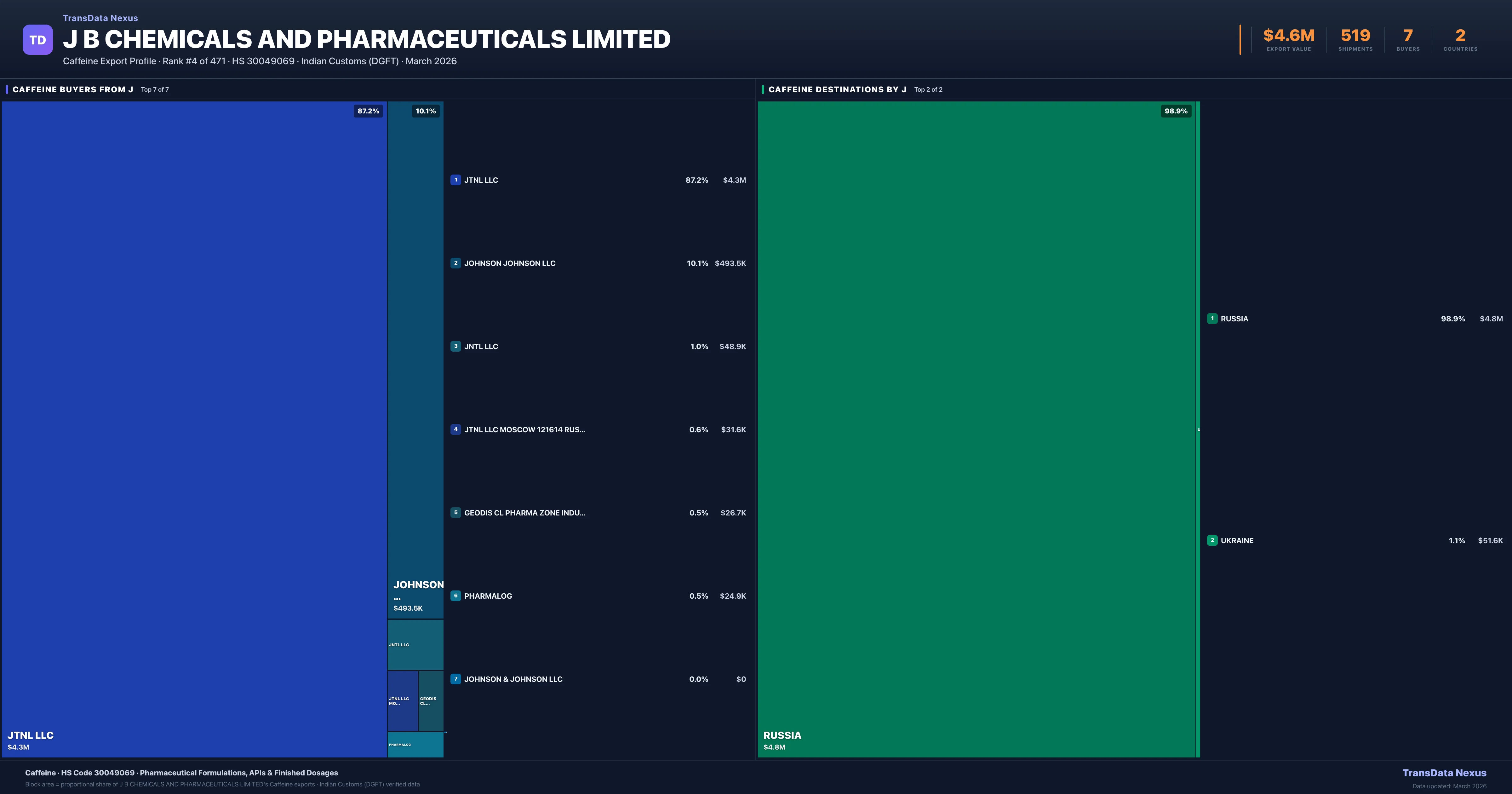 J B Chemicals AND Pharmaceuticals Limited — Caffeine Export Profile: Buyers & Destinations