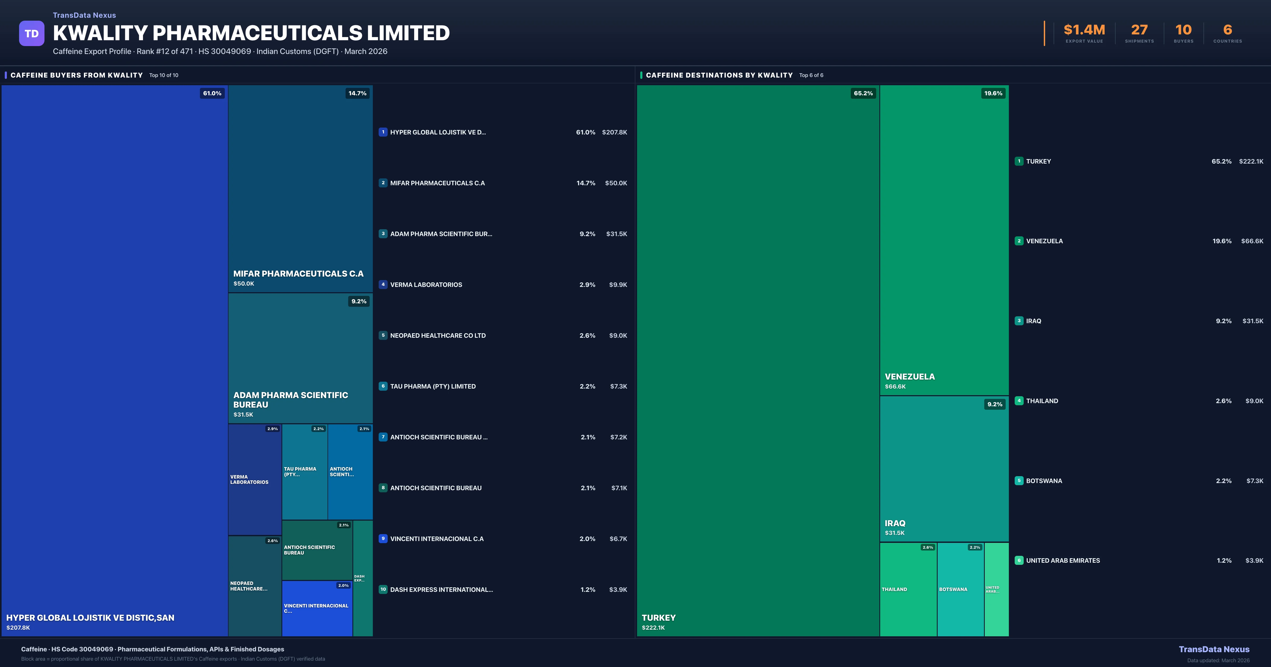 Kwality Pharmaceuticals Limited — Caffeine Export Profile: Buyers & Destinations