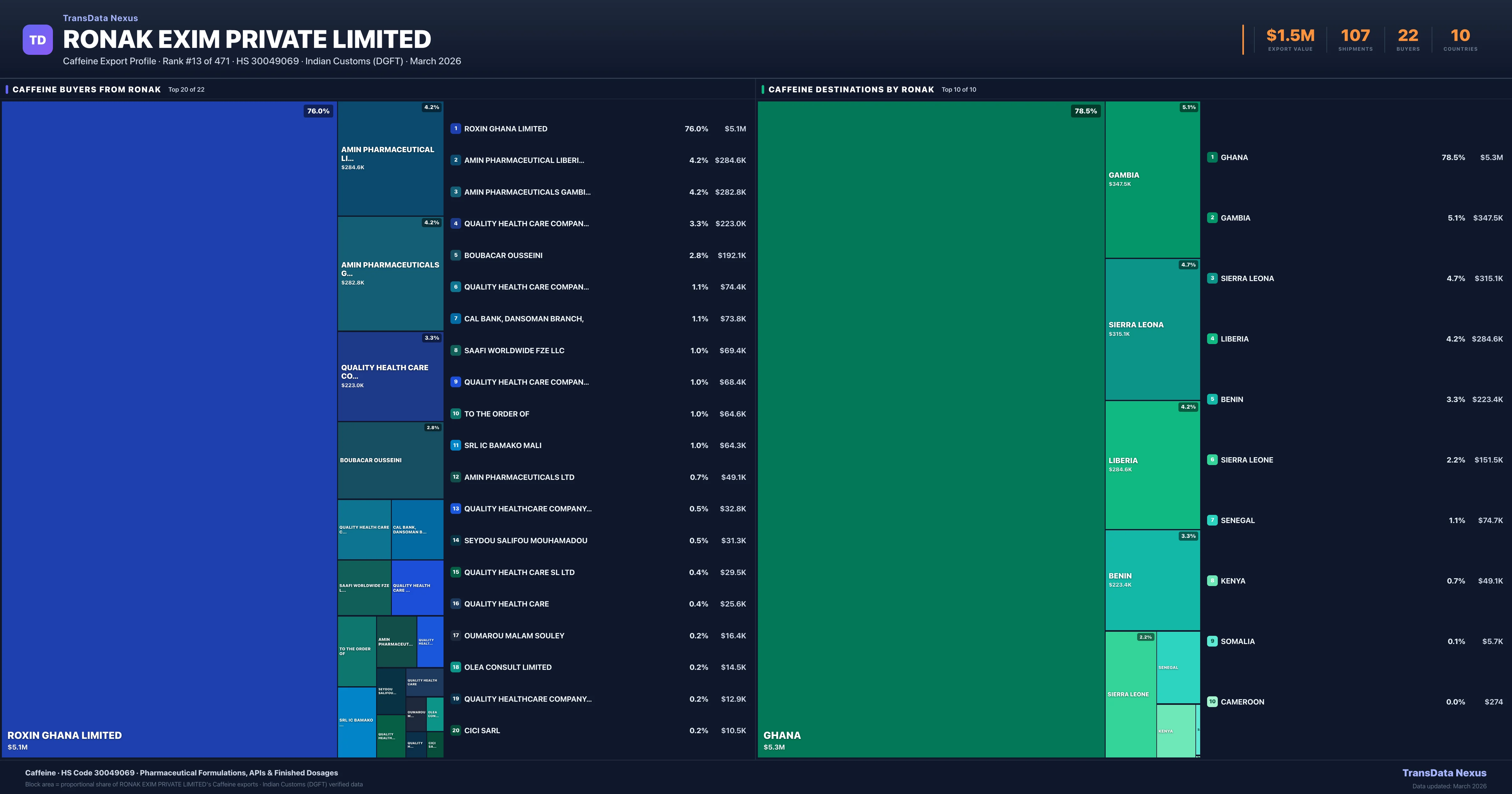 Ronak Exim Private Limited — Caffeine Export Profile: Buyers & Destinations