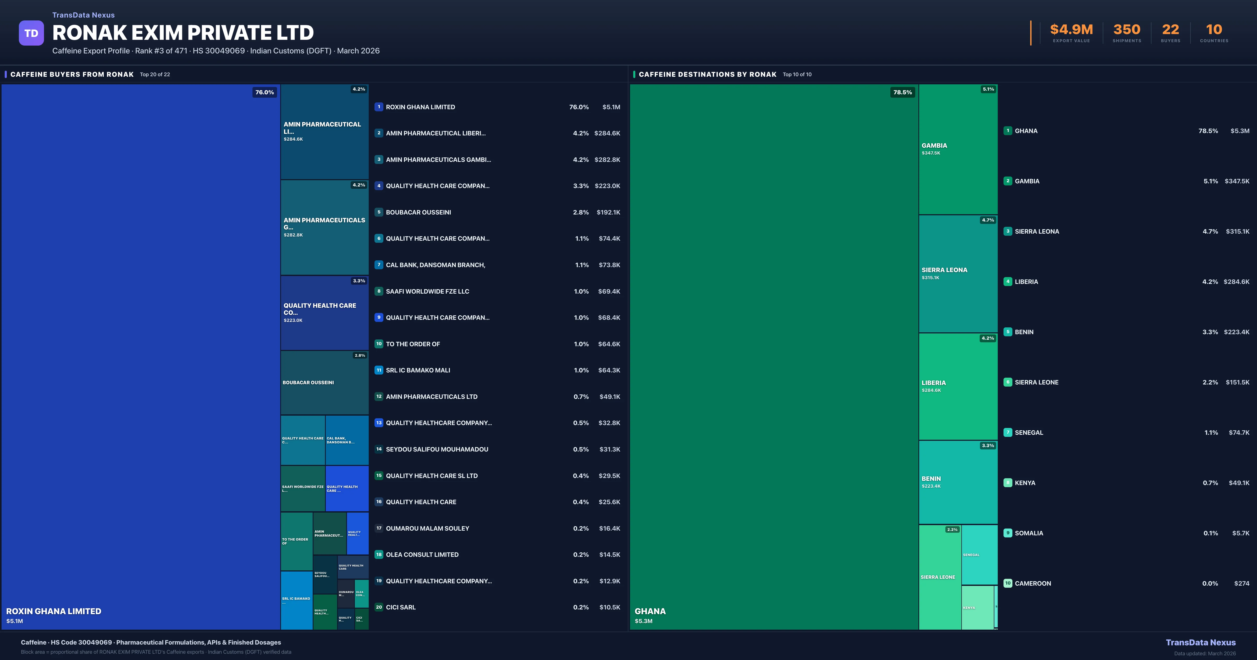 Ronak Exim Private Ltd — Caffeine Export Profile: Buyers & Destinations