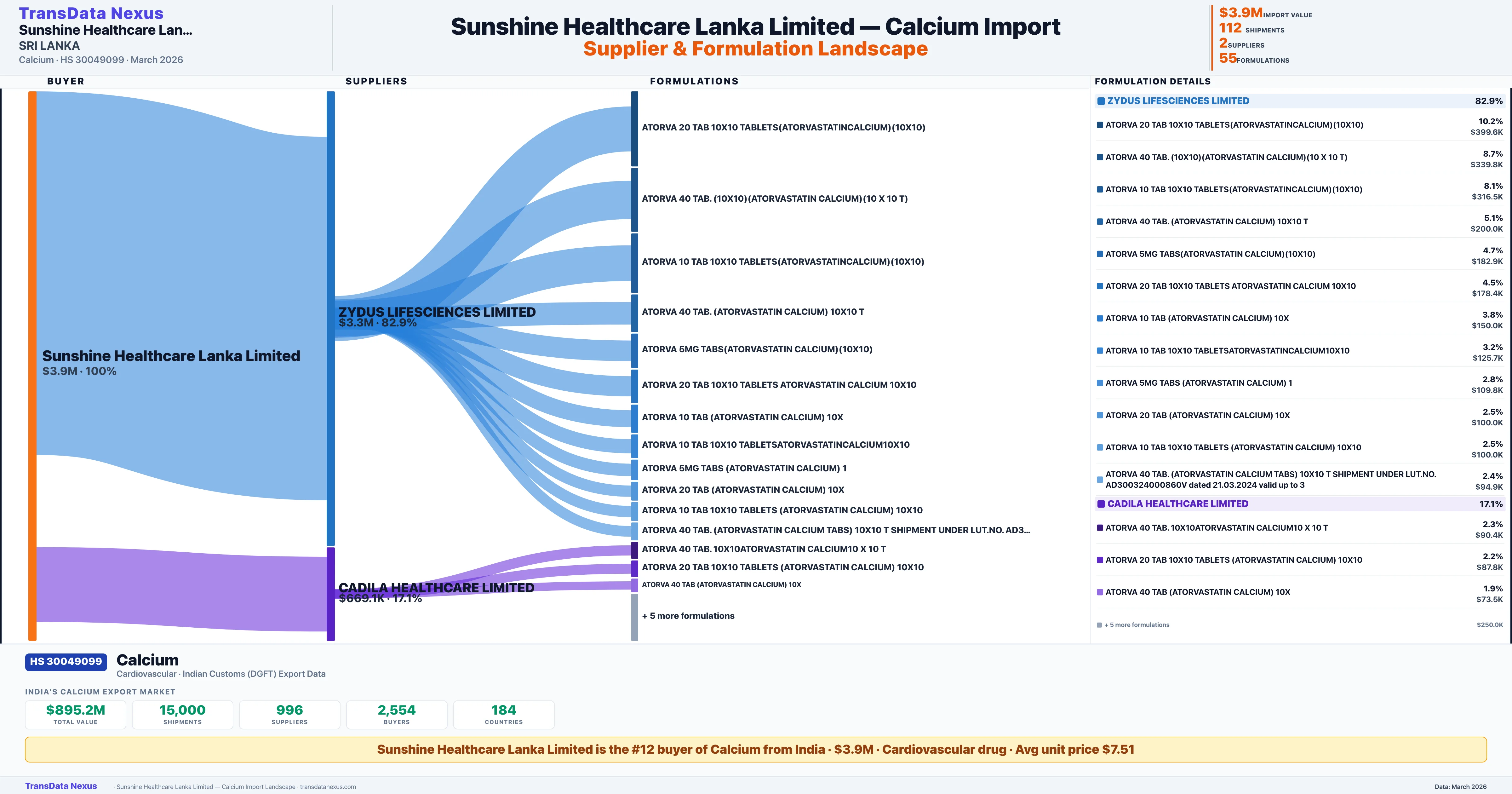SUNSHINE HEALTHCARE LANKA LIMITED β Calcium Import Profile: Suppliers, Formulations & Sources