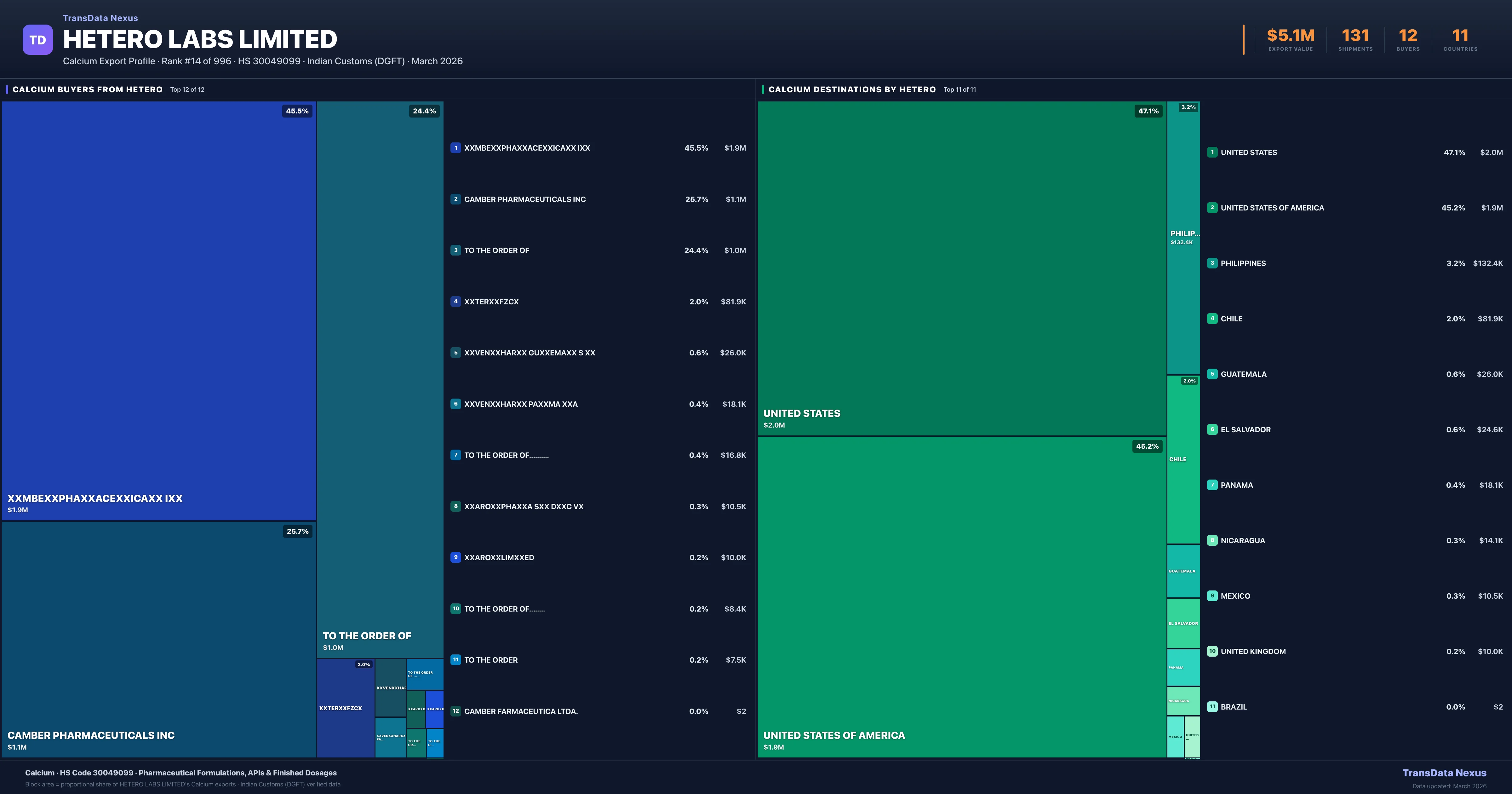 Hetero Labs Limited — Calcium Export Profile: Buyers & Destinations