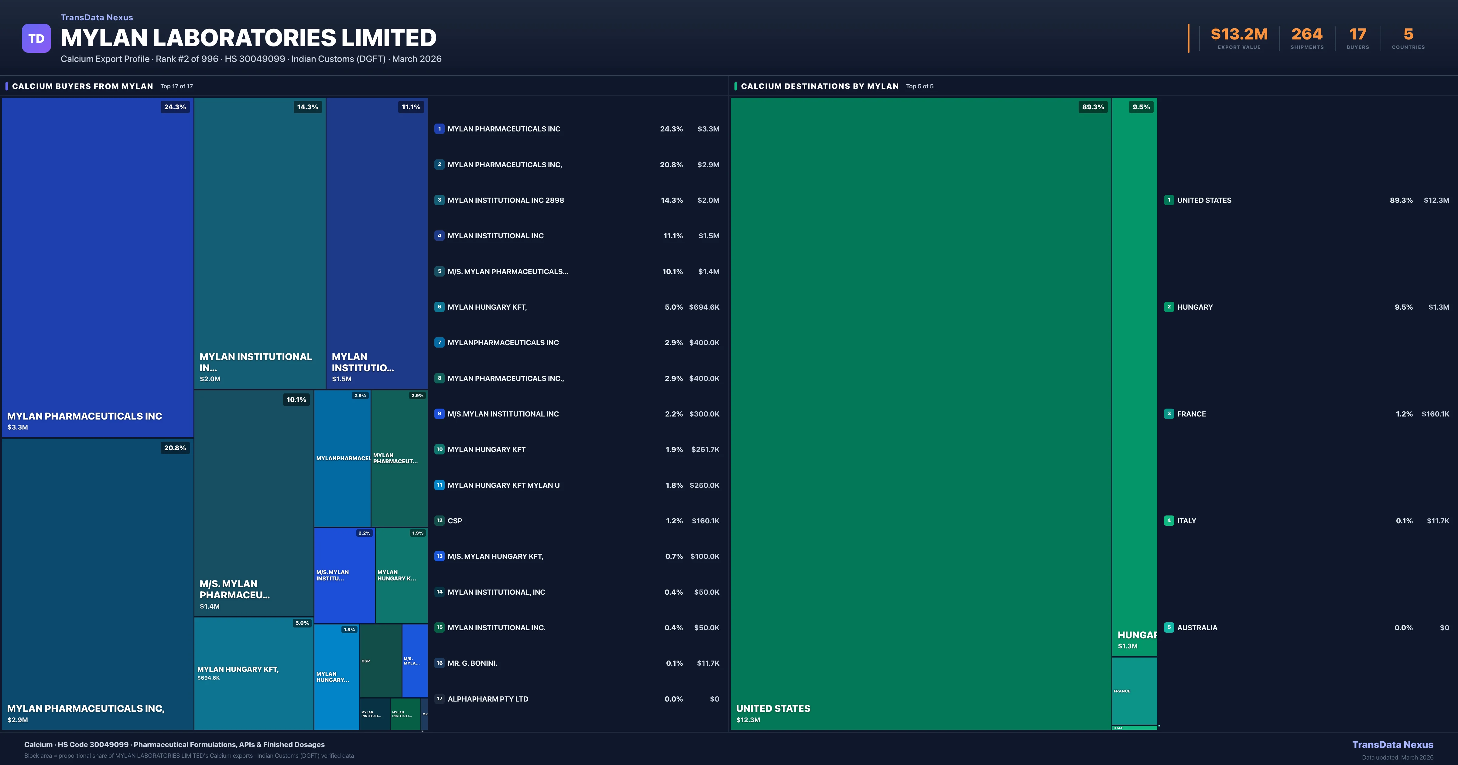 Mylan Laboratories Limited — Calcium Export Profile: Buyers & Destinations