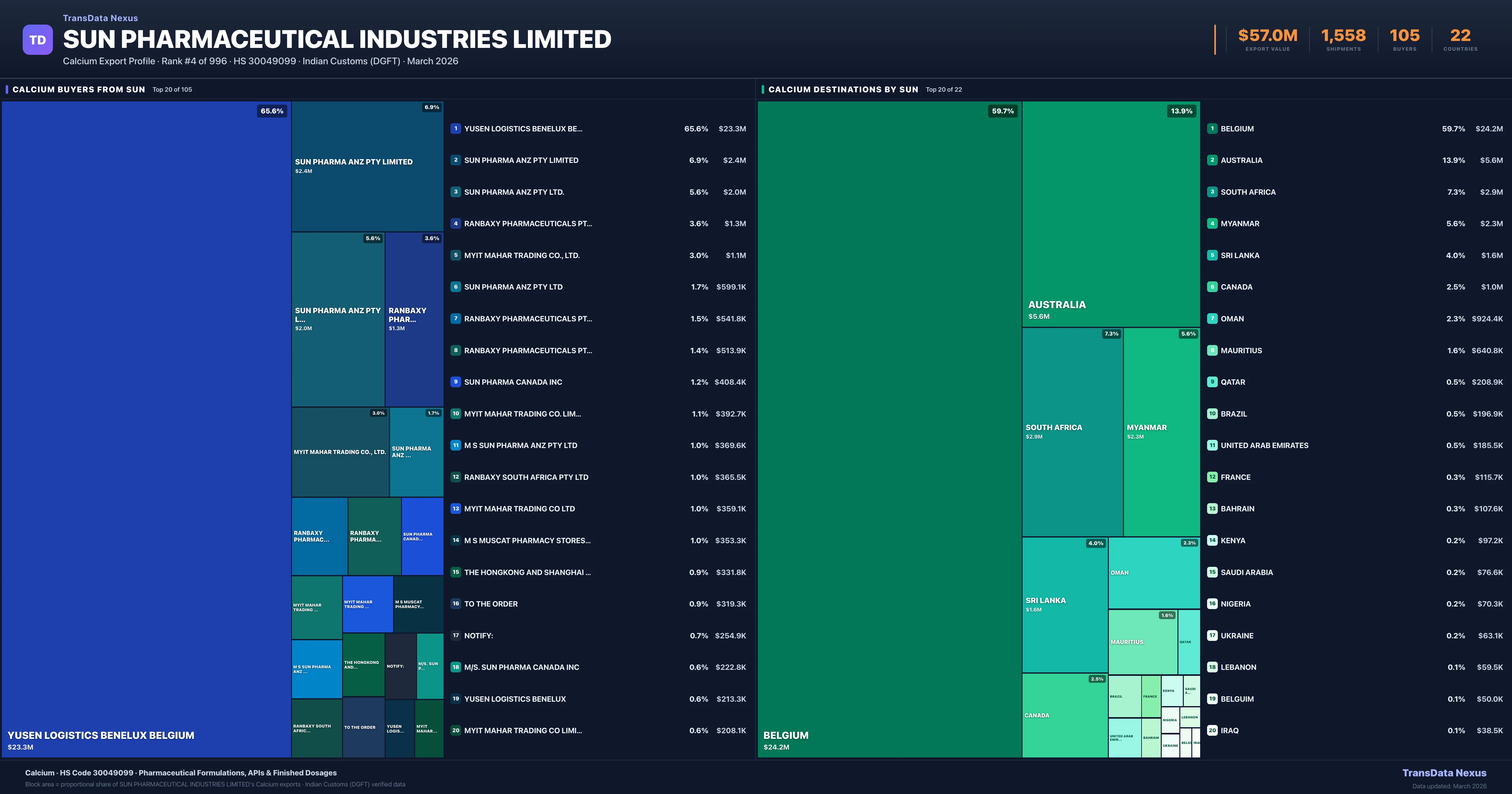 SUN Pharmaceutical Industries Limited — Calcium Export Profile: Buyers & Destinations
