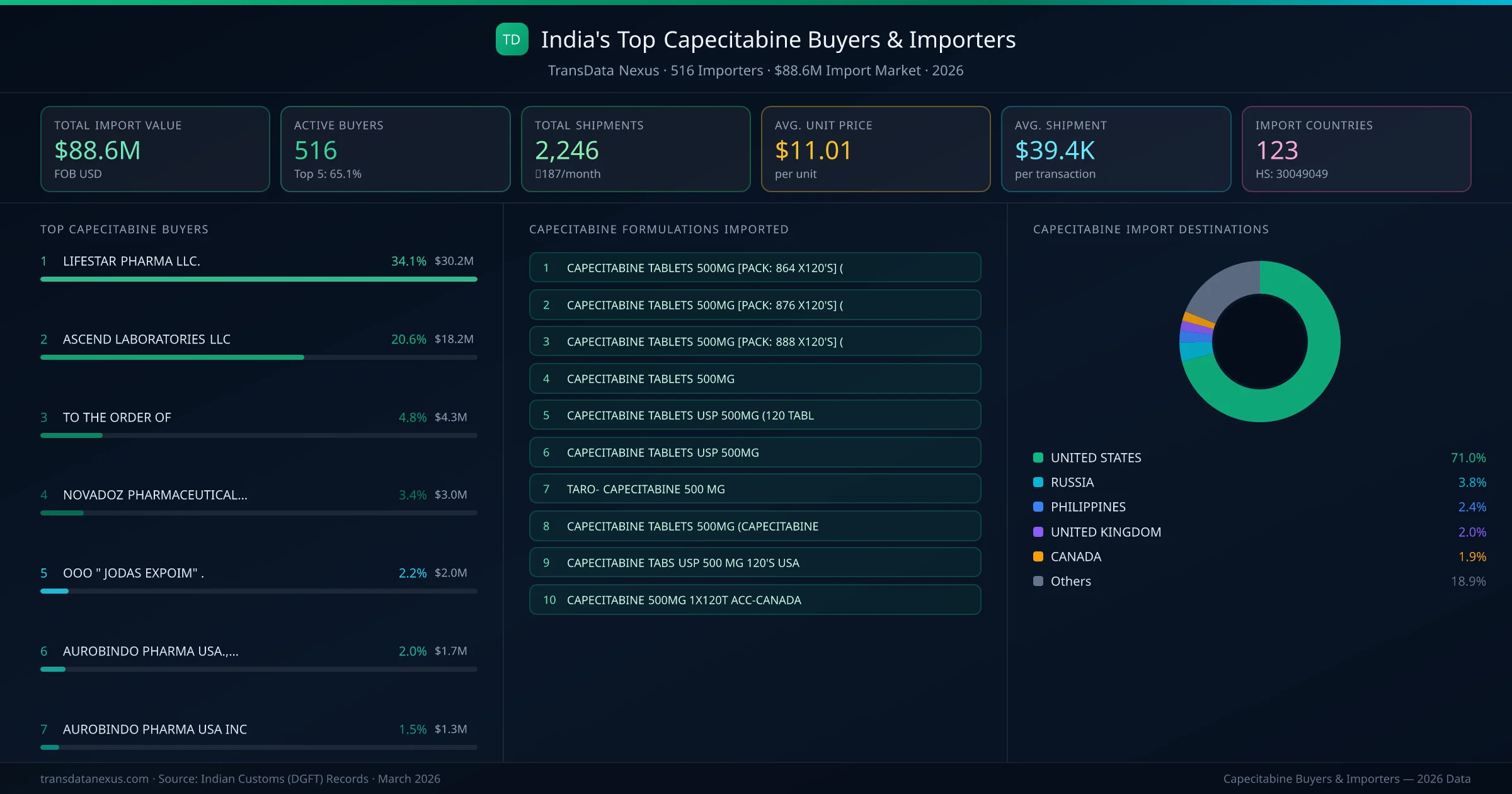 Who Buys Capecitabine from India โ 516 Importers Behind a $88.6M Market