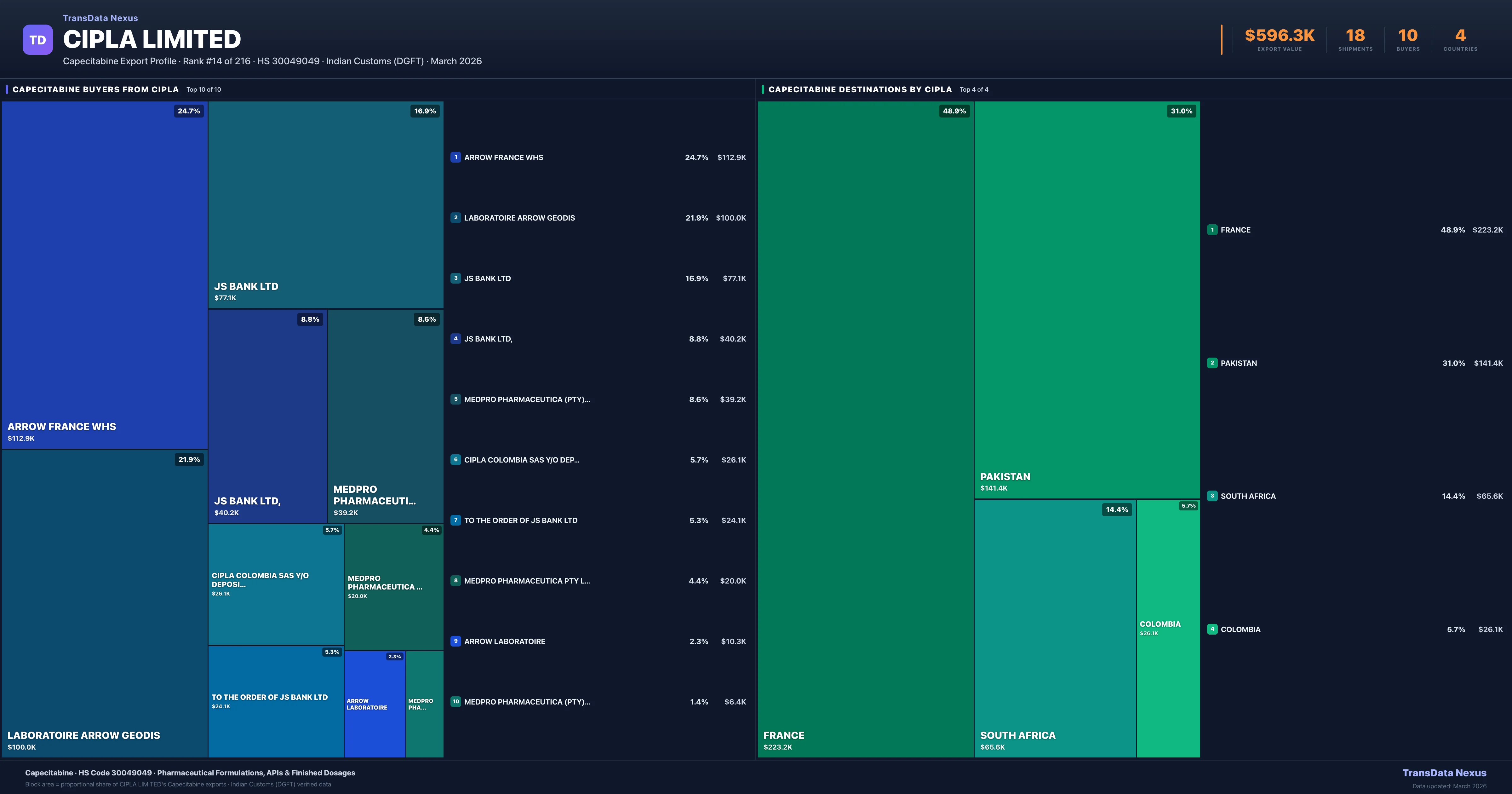 Cipla Limited — Capecitabine Export Profile: Buyers & Destinations