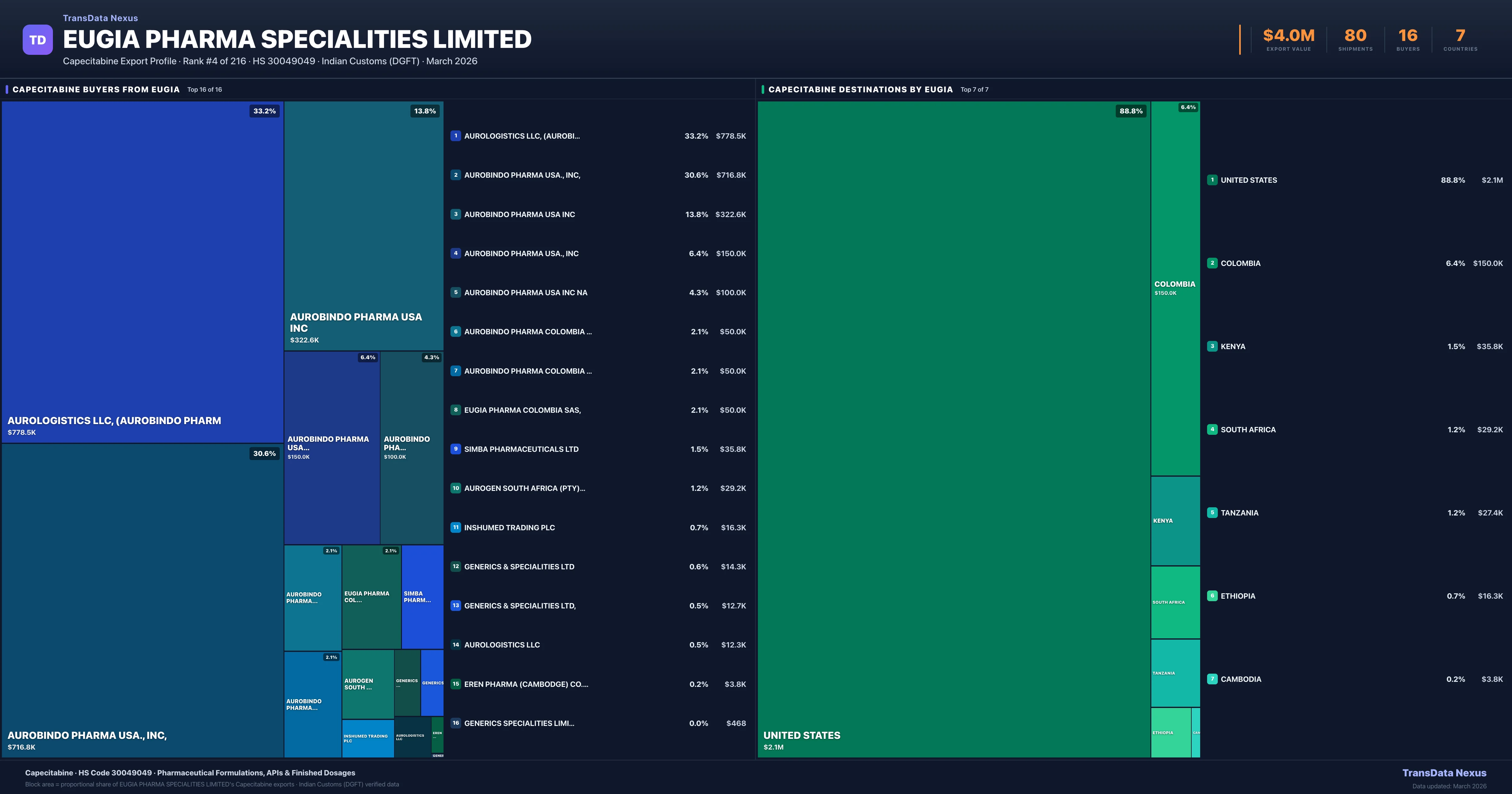 Eugia Pharma Specialities Limited — Capecitabine Export Profile: Buyers & Destinations
