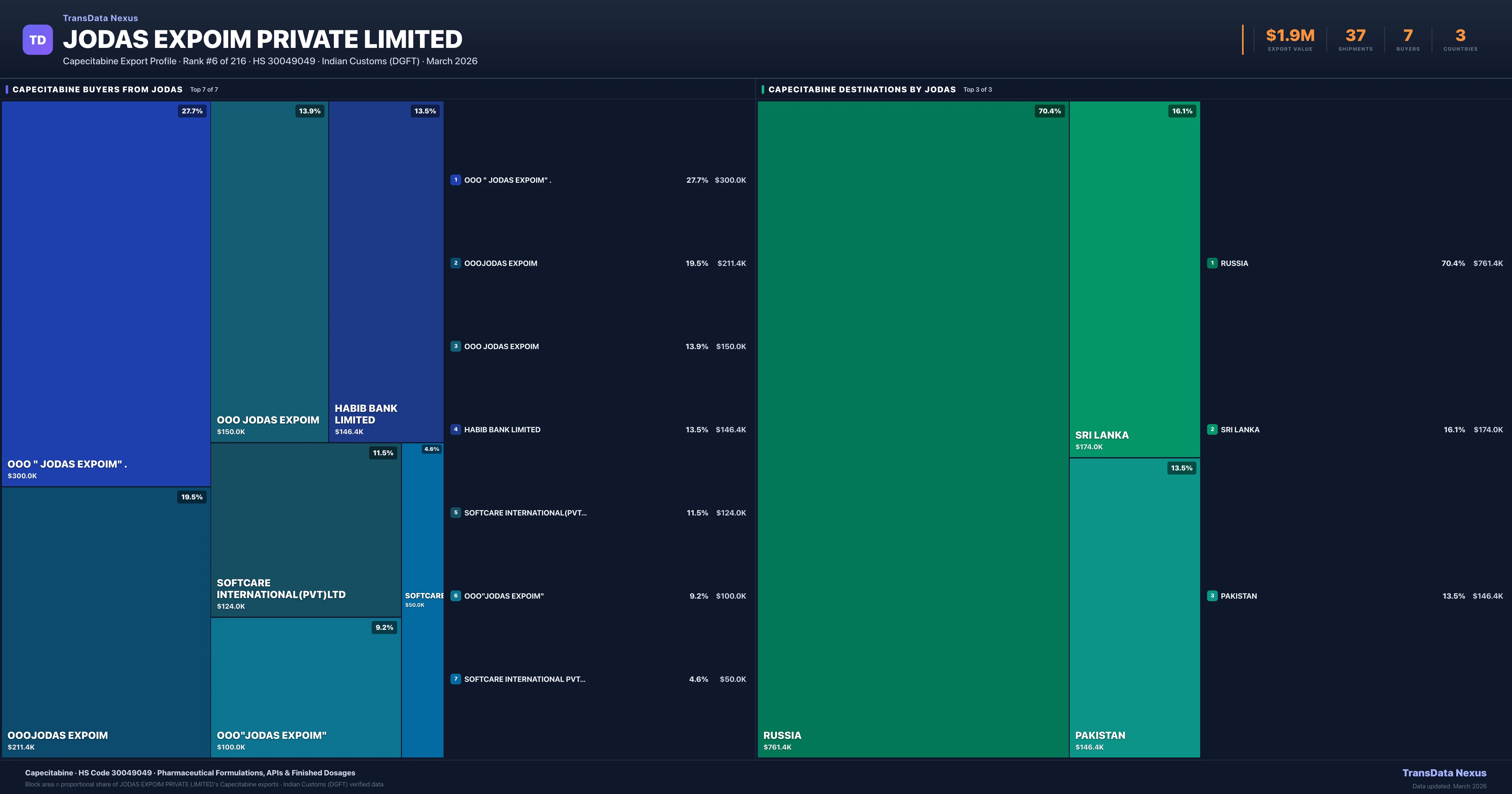 Jodas Expoim Private Limited — Capecitabine Export Profile: Buyers & Destinations