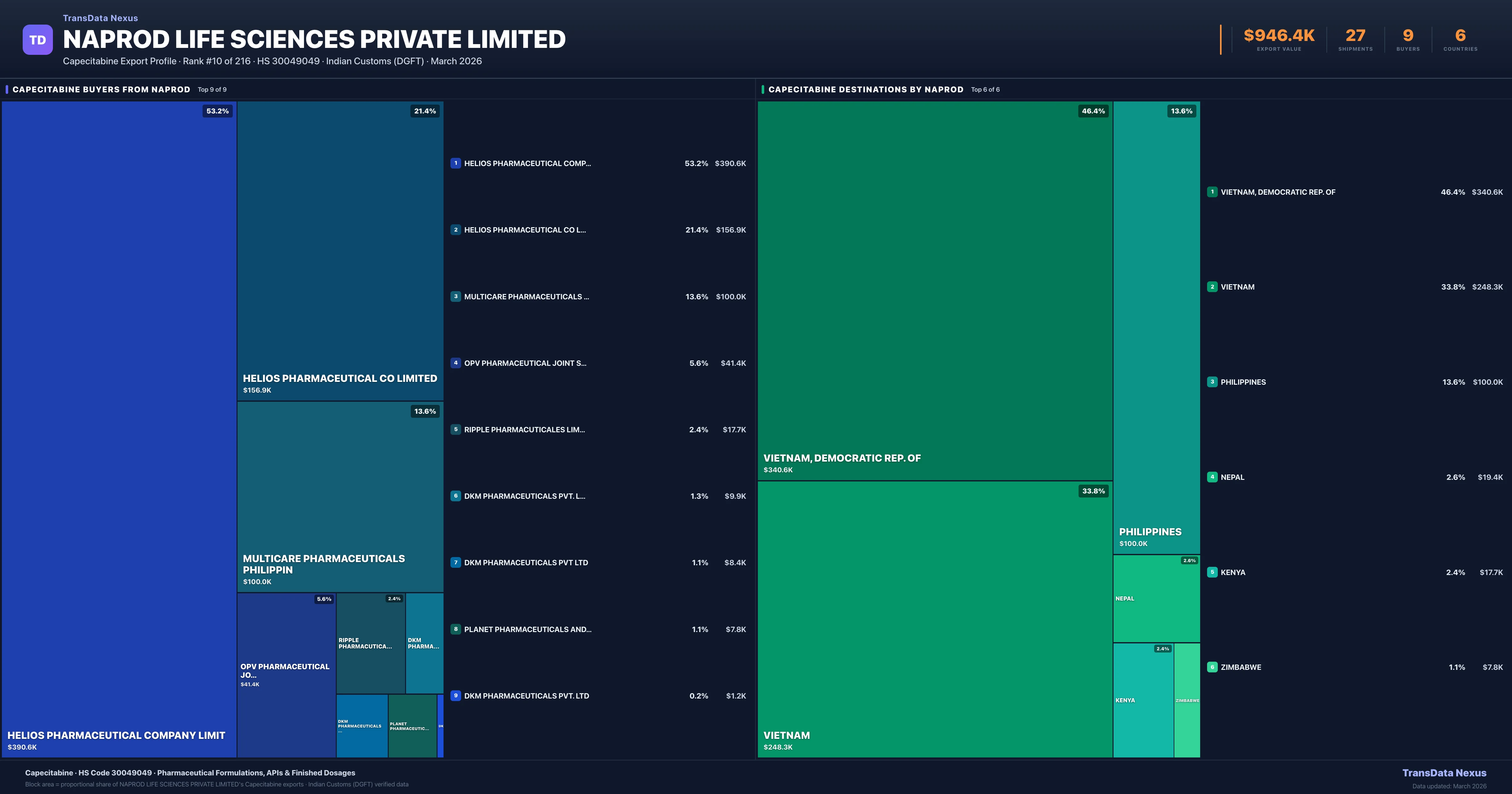 Naprod Life Sciences Private Limited — Capecitabine Export Profile: Buyers & Destinations