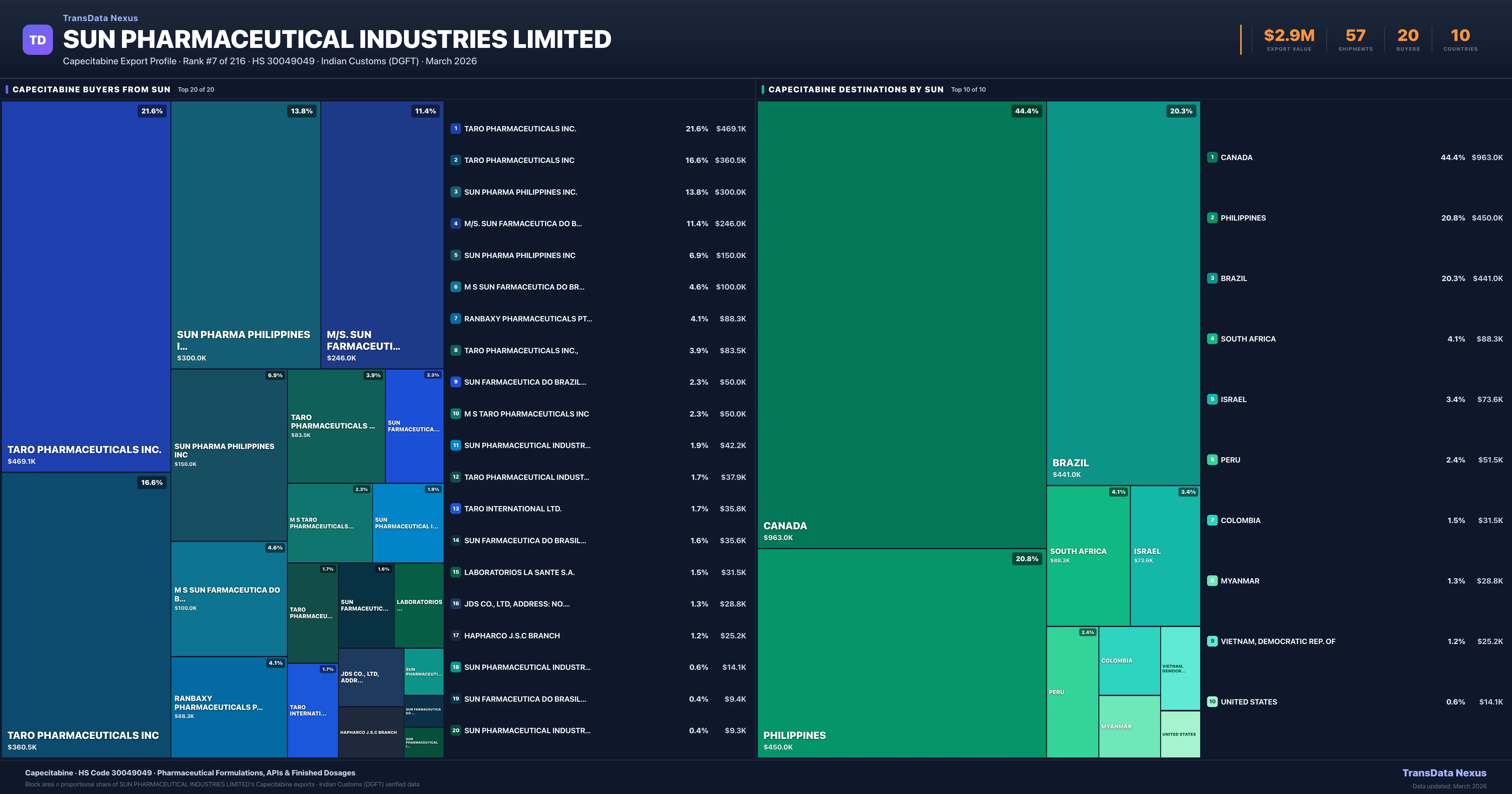 SUN Pharmaceutical Industries Limited — Capecitabine Export Profile: Buyers & Destinations
