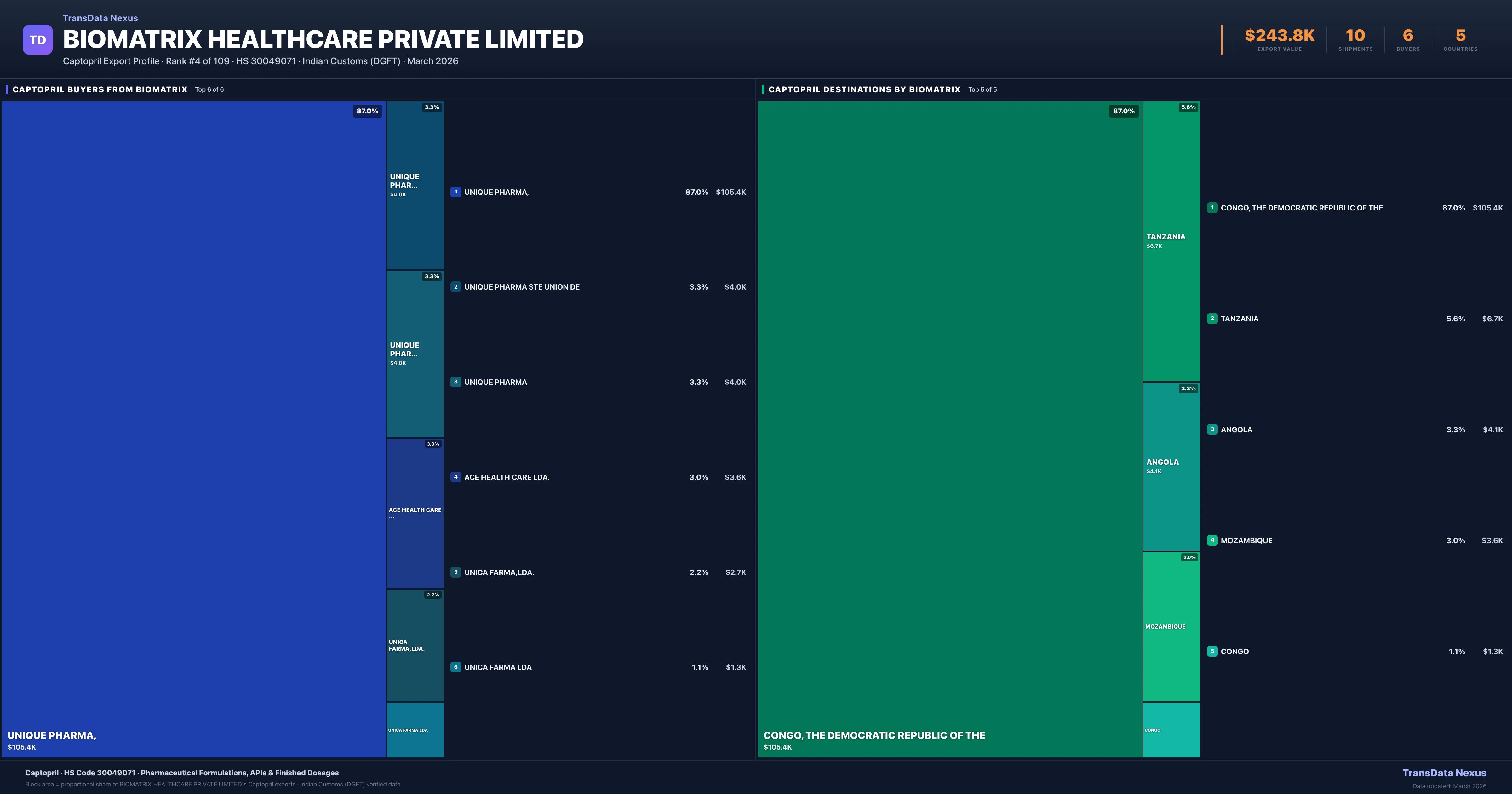 Biomatrix Healthcare Private Limited — Captopril Export Profile: Buyers & Destinations