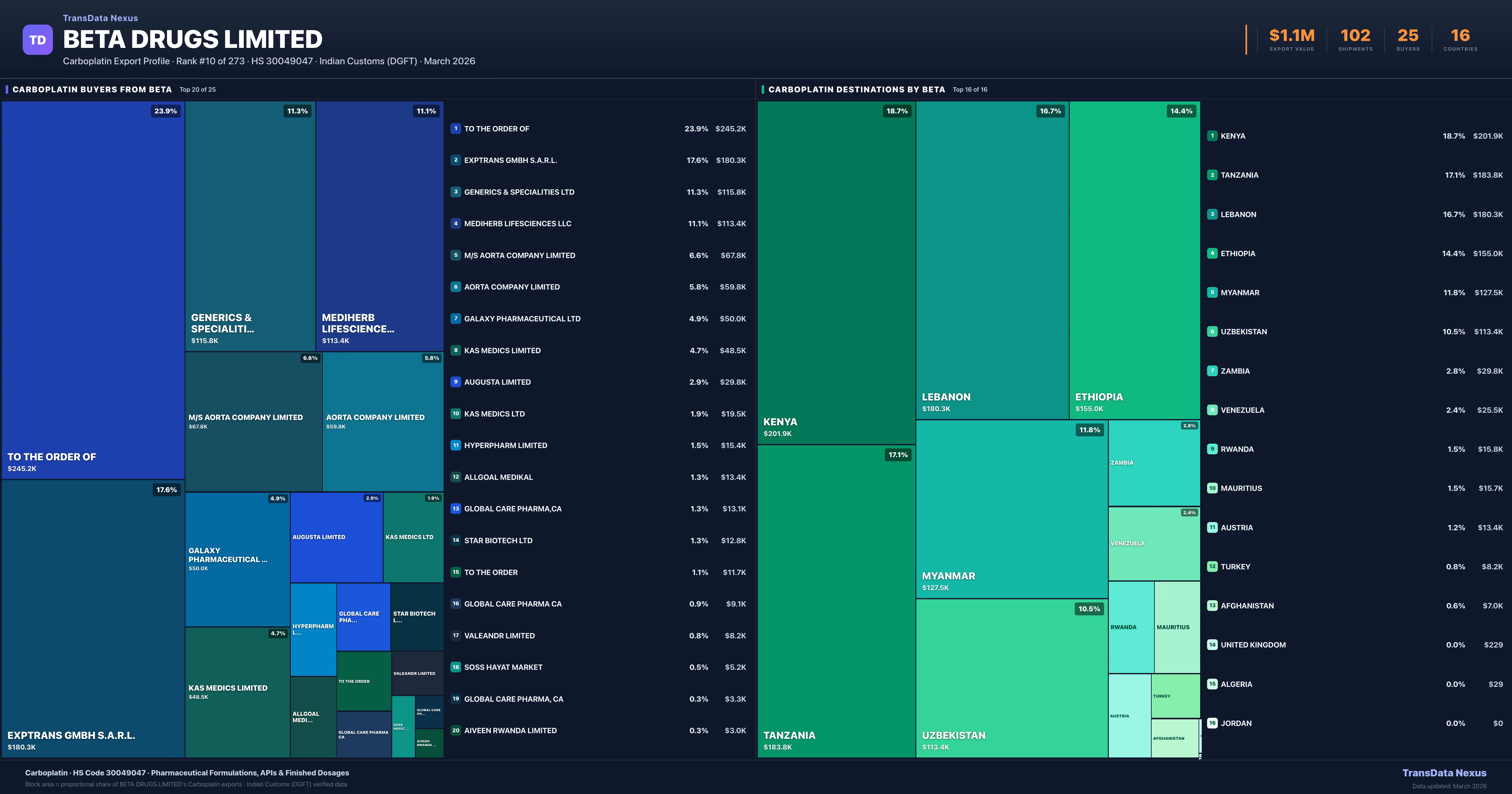 Beta Drugs Limited — Carboplatin Export Profile: Buyers & Destinations