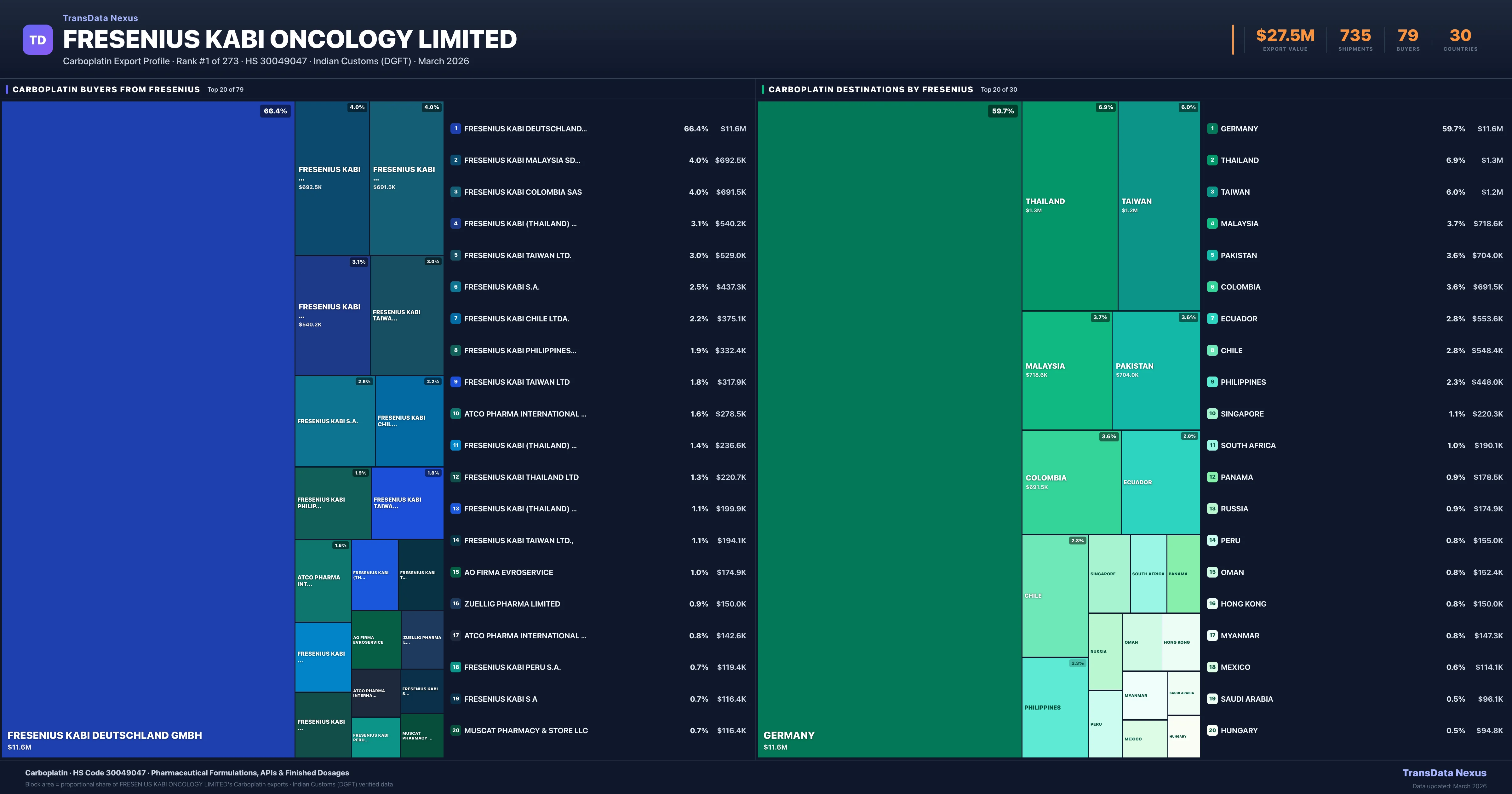 Fresenius Kabi Oncology Limited — Carboplatin Export Profile: Buyers & Destinations
