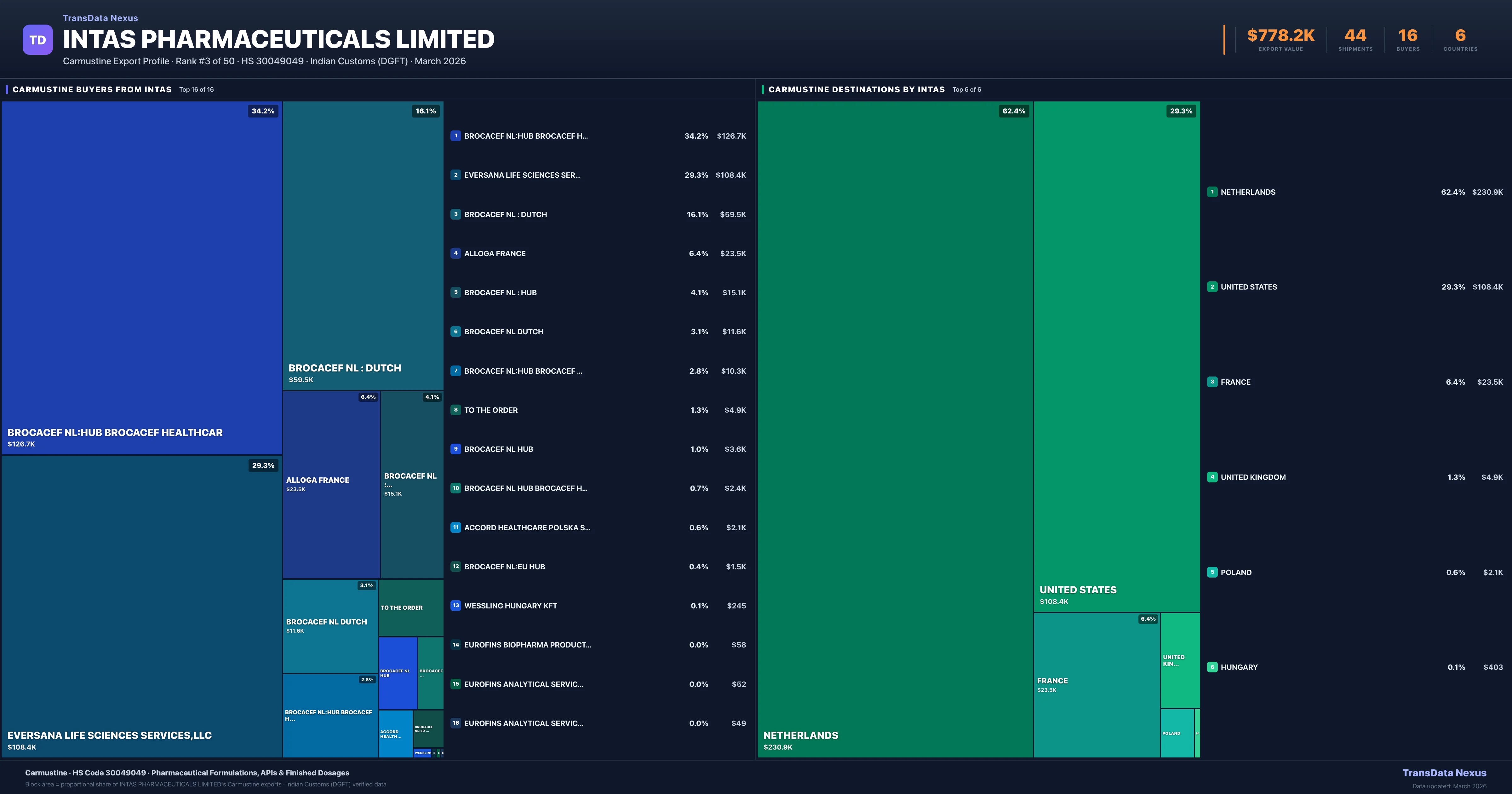 Intas Pharmaceuticals Limited — Carmustine Export Profile: Buyers & Destinations