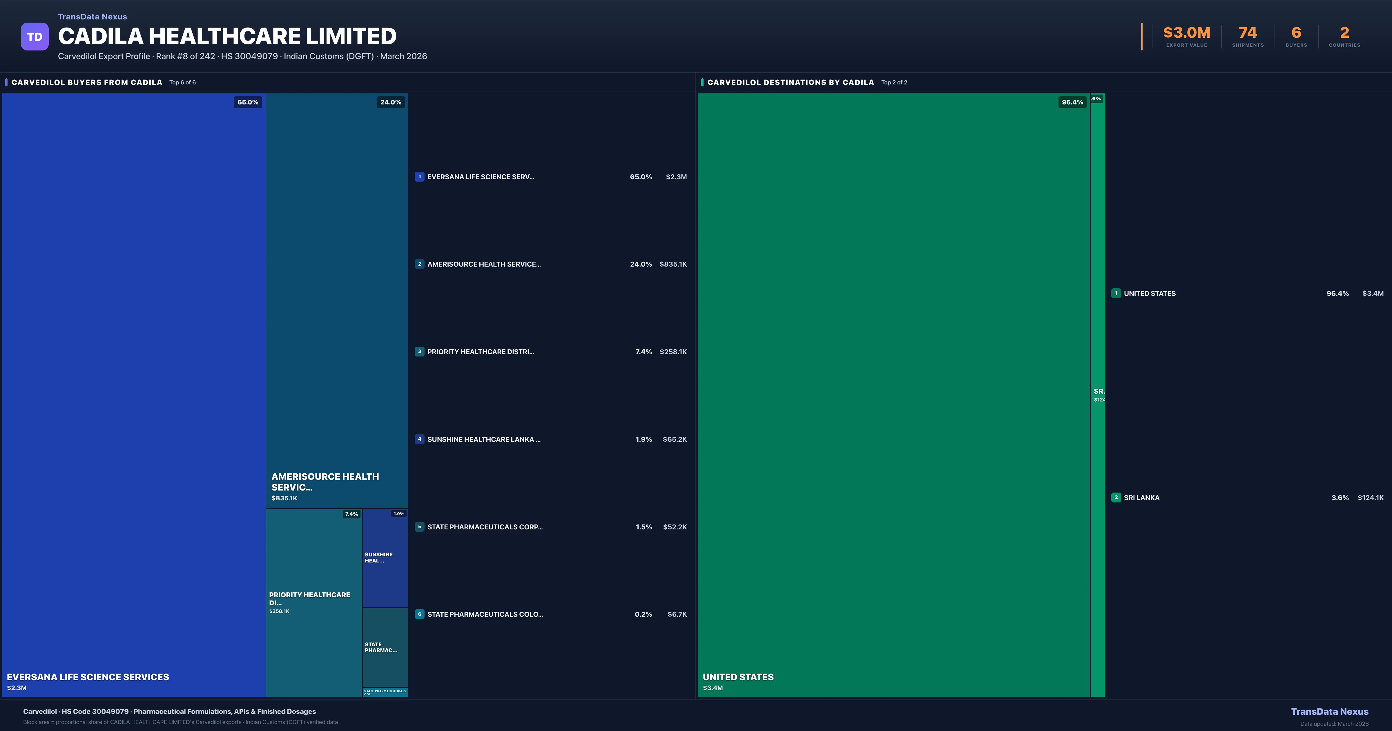 Cadila Healthcare Limited — Carvedilol Export Profile: Buyers & Destinations