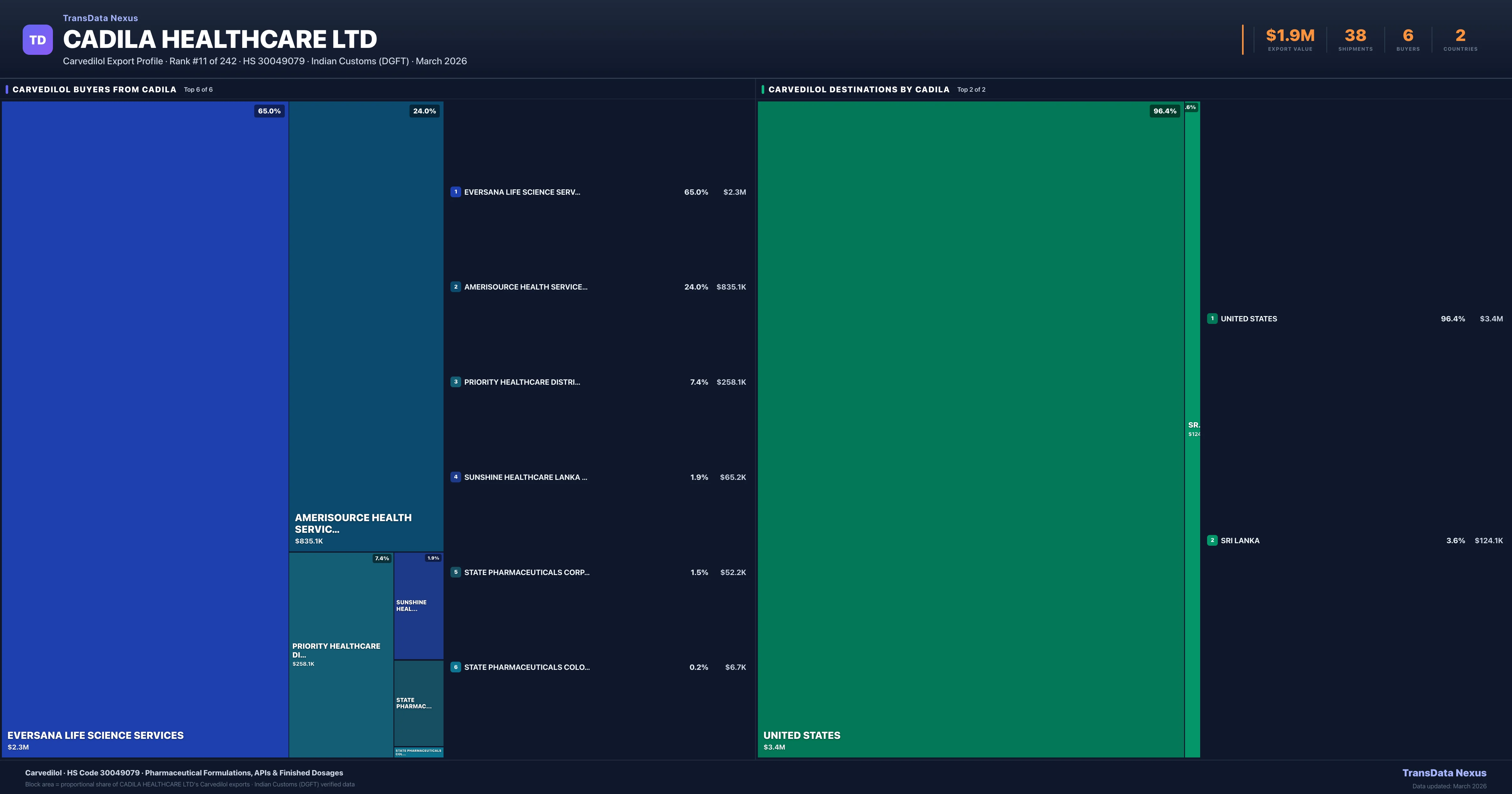 Cadila Healthcare Ltd β Carvedilol Export Profile: Buyers & Destinations