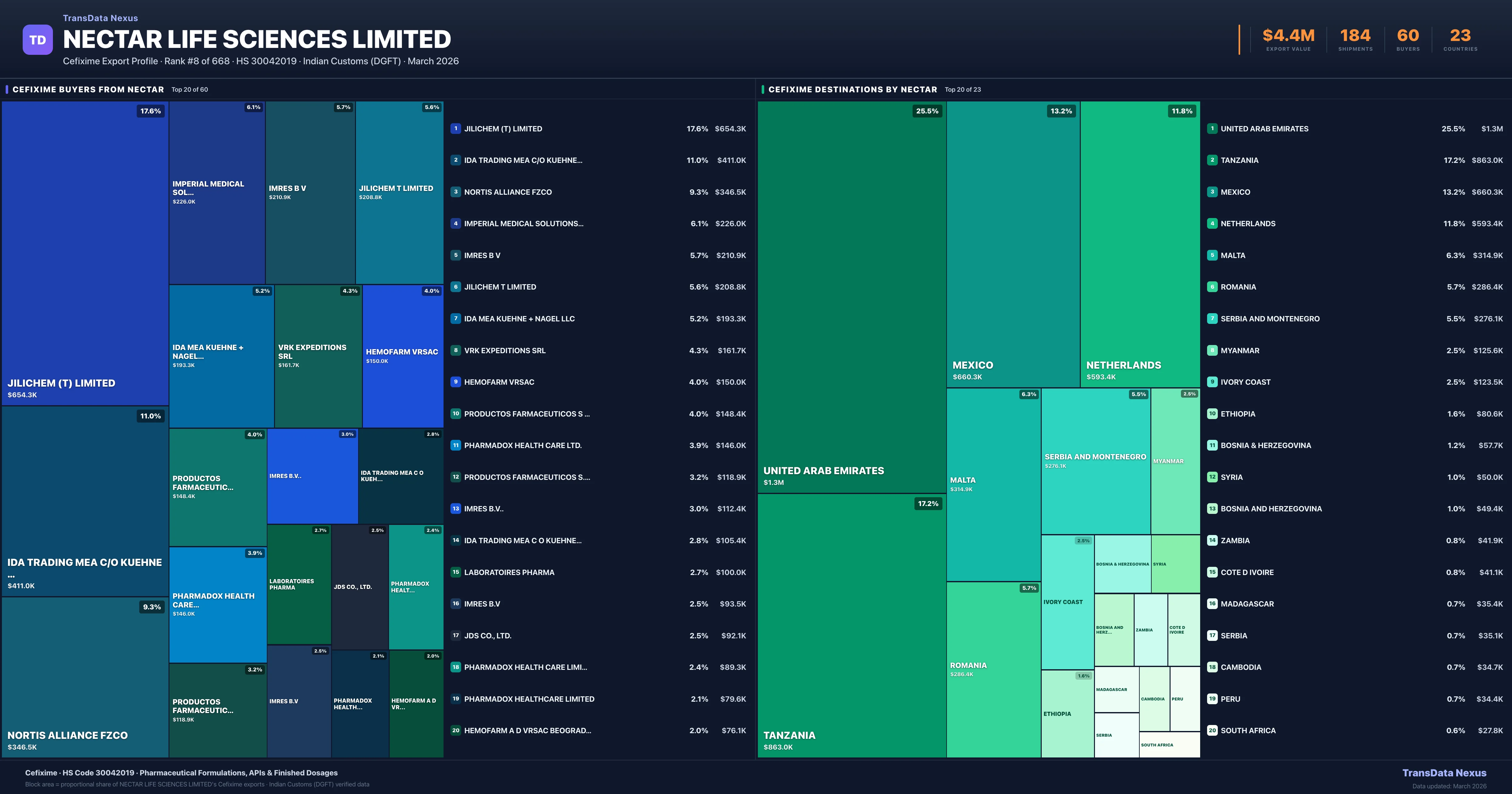 Nectar Life Sciences Limited — Cefixime Export Profile: Buyers & Destinations