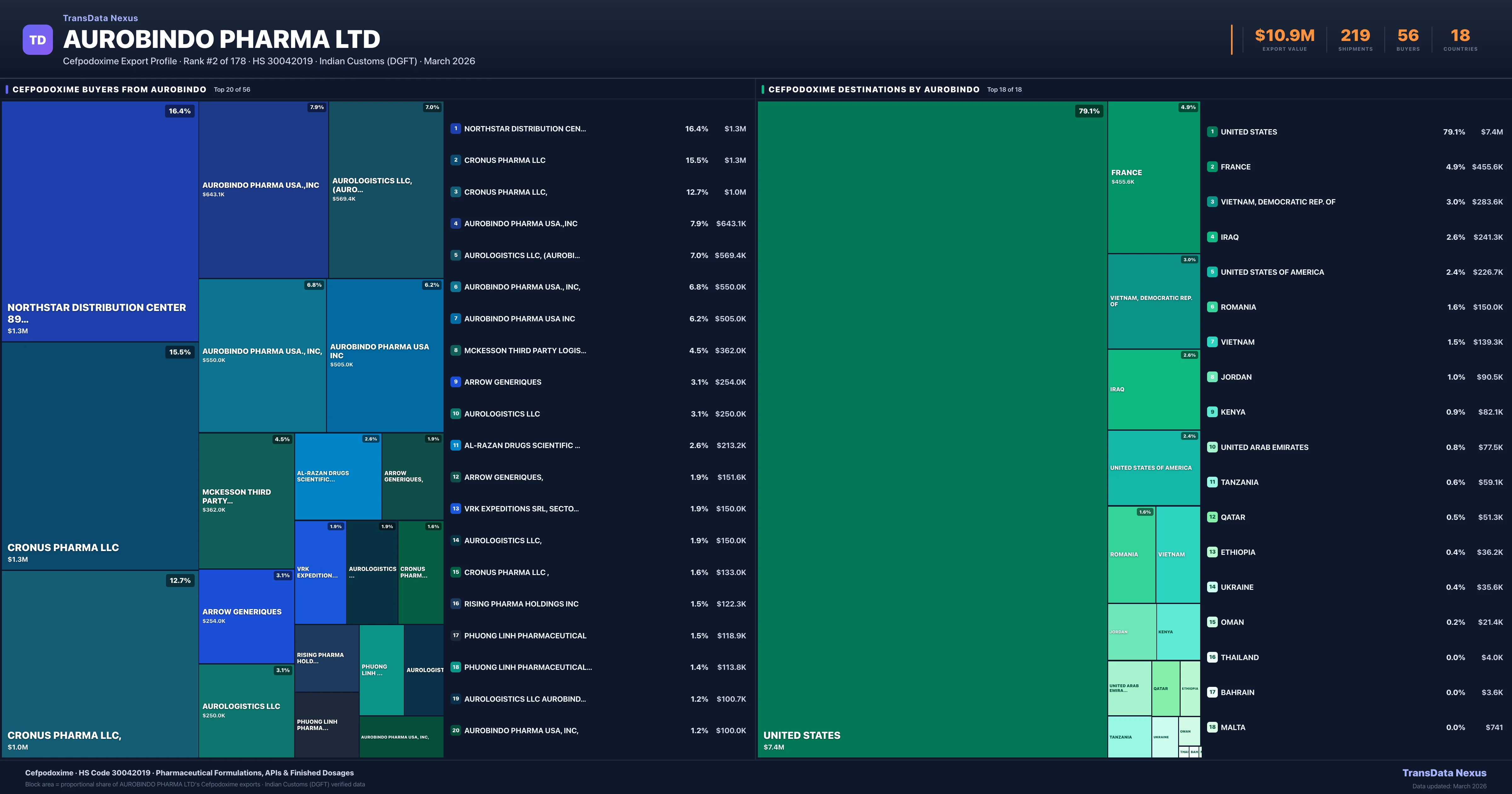 Aurobindo Pharma Ltd β Cefpodoxime Export Profile: Buyers & Destinations