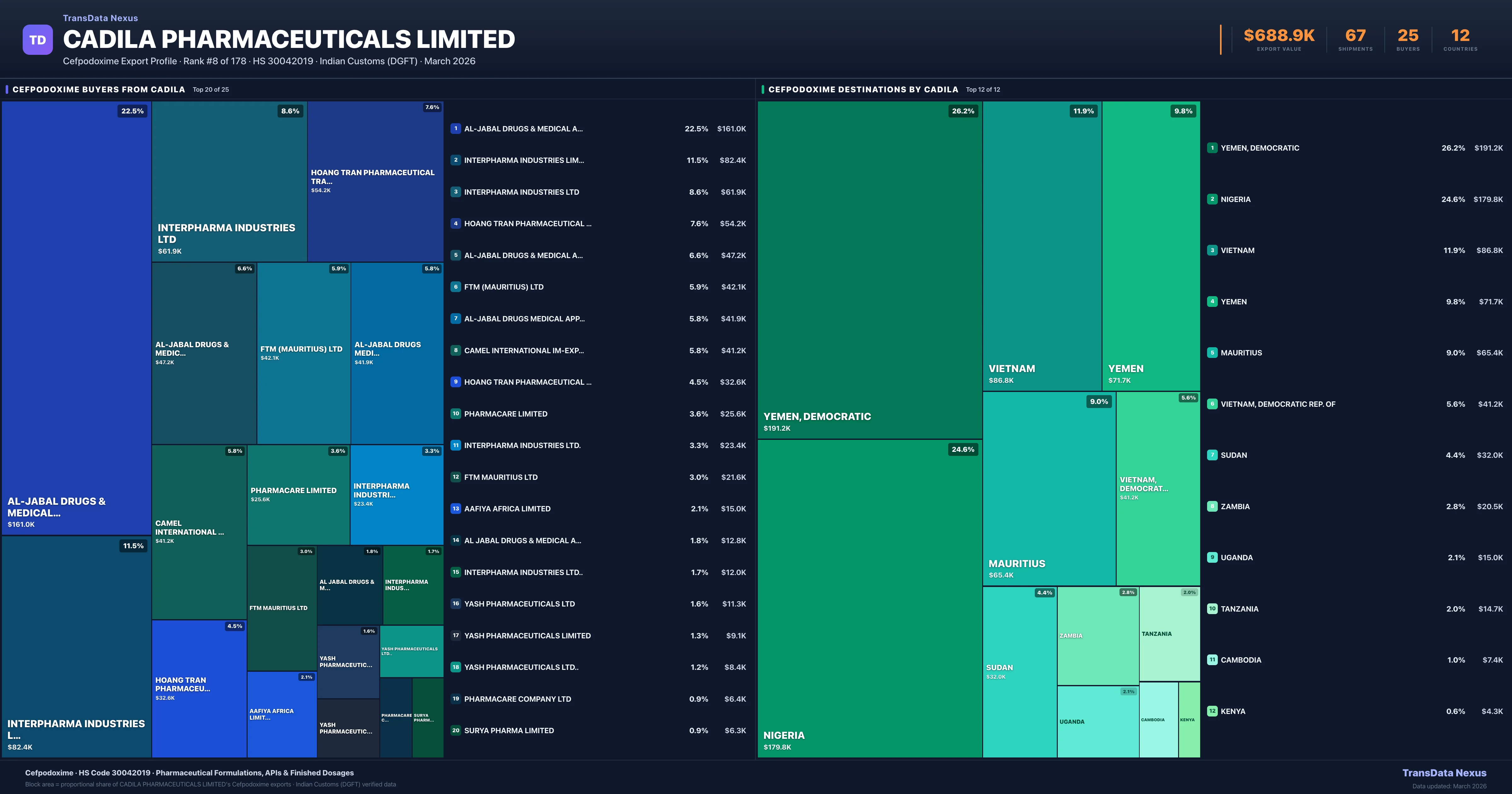 Cadila Pharmaceuticals Limited — Cefpodoxime Export Profile: Buyers & Destinations
