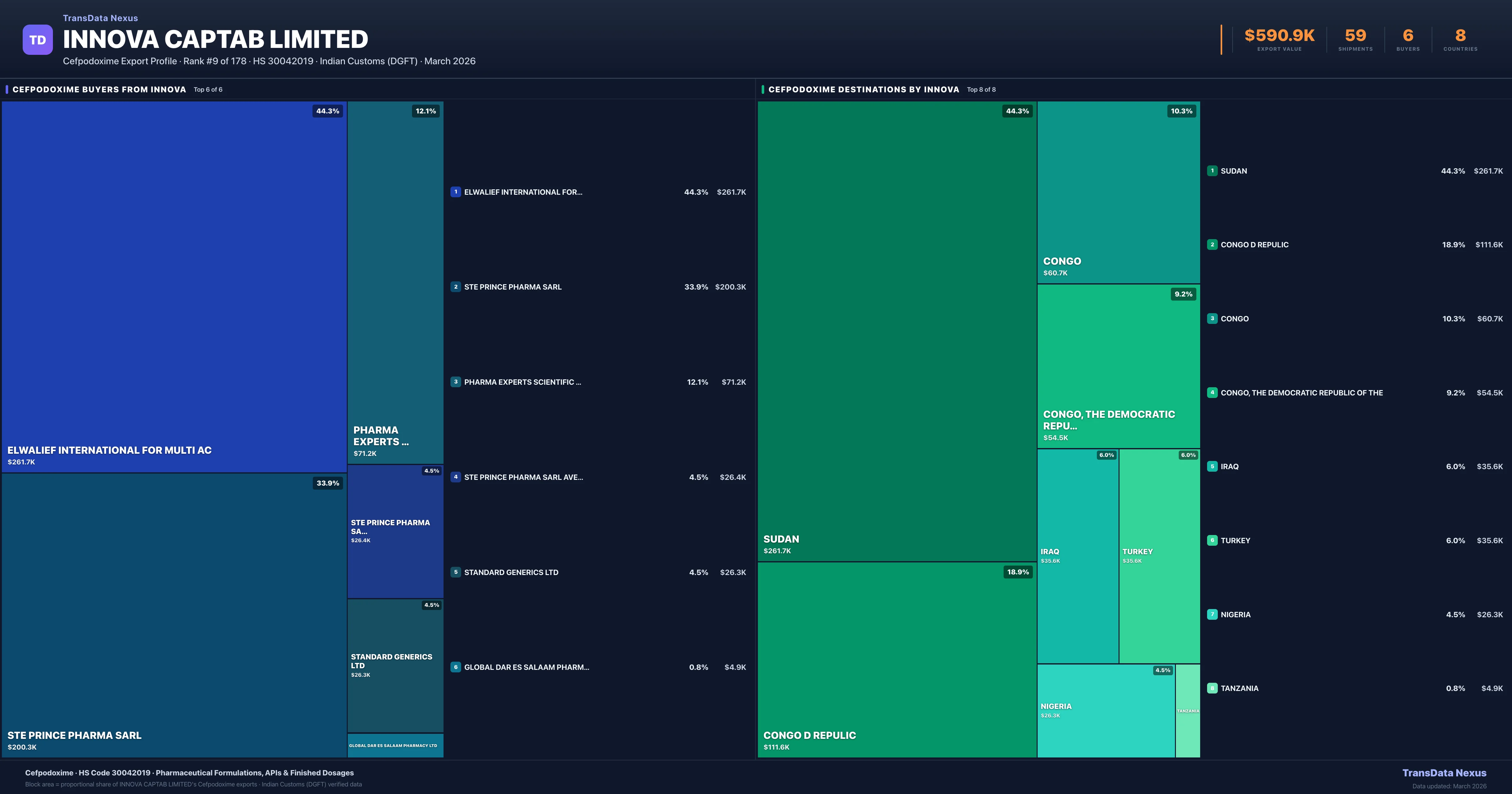 Innova Captab Limited — Cefpodoxime Export Profile: Buyers & Destinations