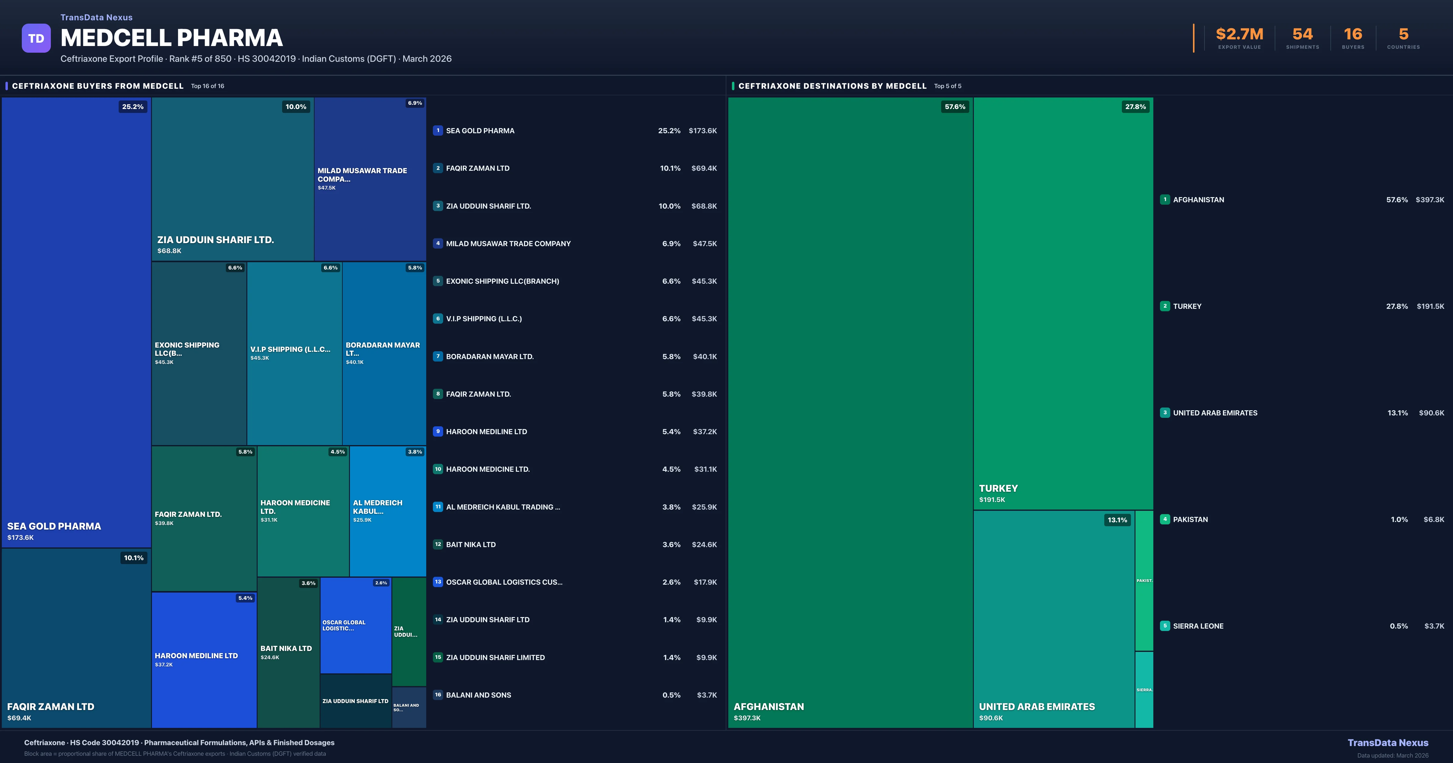 Medcell Pharma — Ceftriaxone Export Profile: Buyers & Destinations