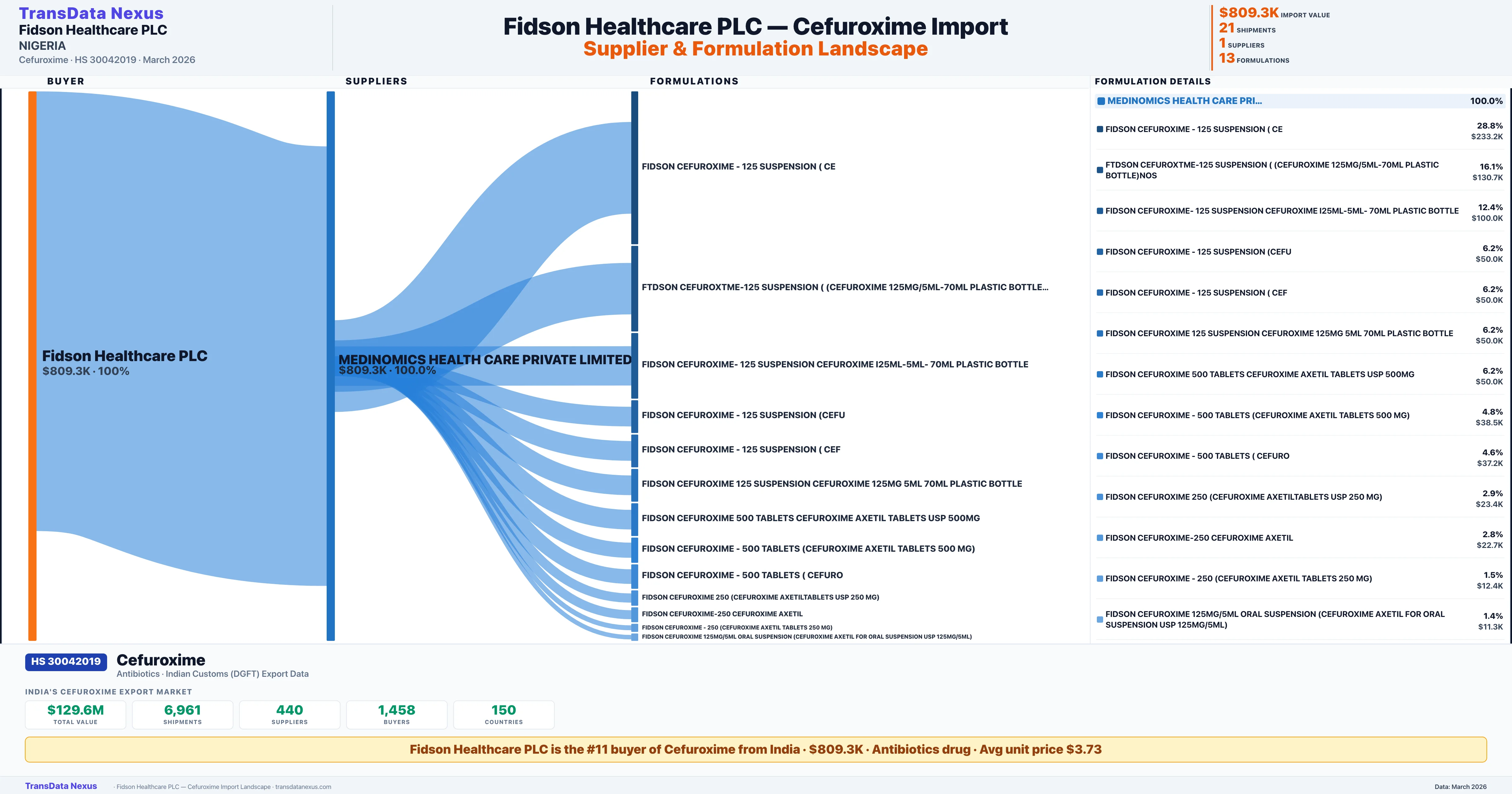 FIDSON HEALTHCARE PLC β Cefuroxime Import Profile: Suppliers, Formulations & Sources