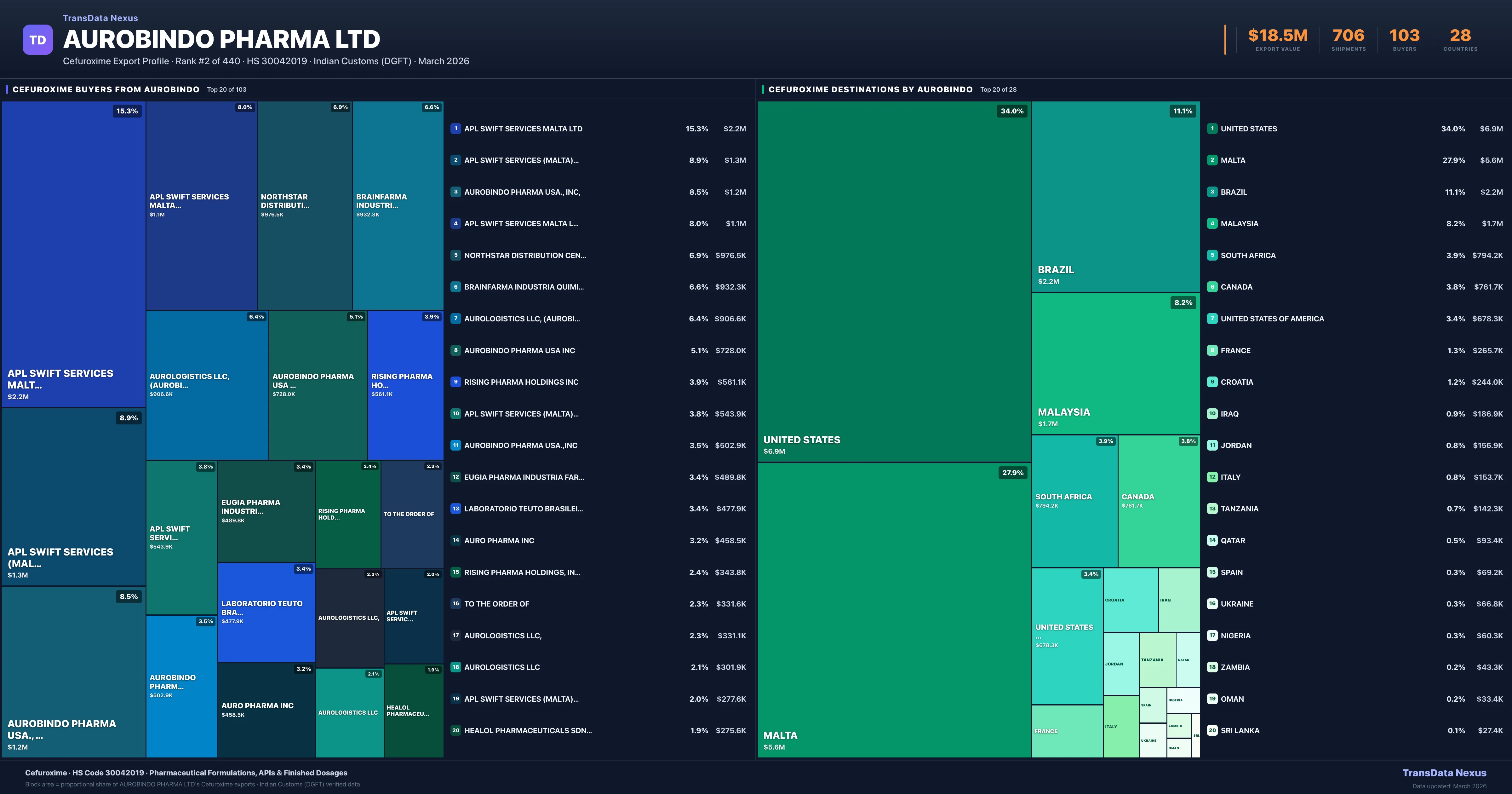 Aurobindo Pharma Ltd — Cefuroxime Export Profile: Buyers & Destinations
