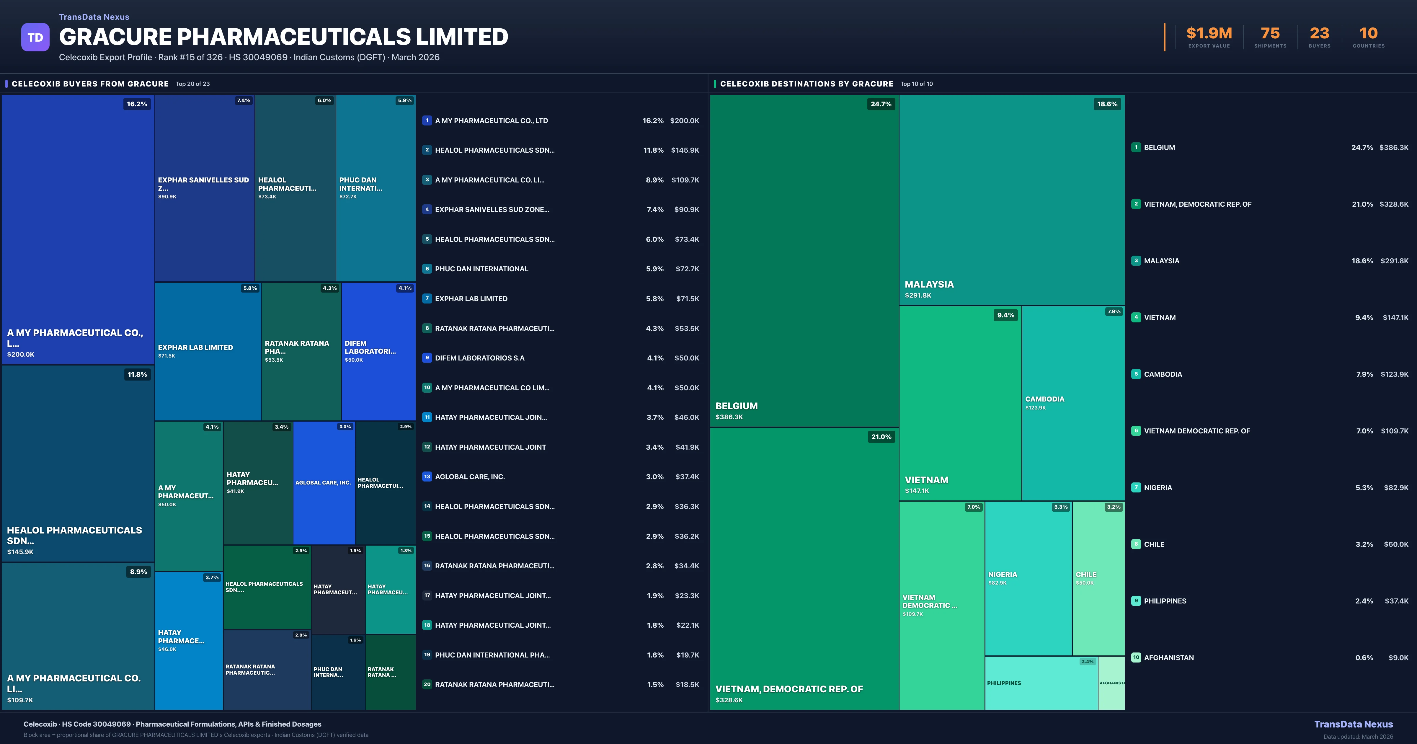 Gracure Pharmaceuticals Limited — Celecoxib Export Profile: Buyers & Destinations