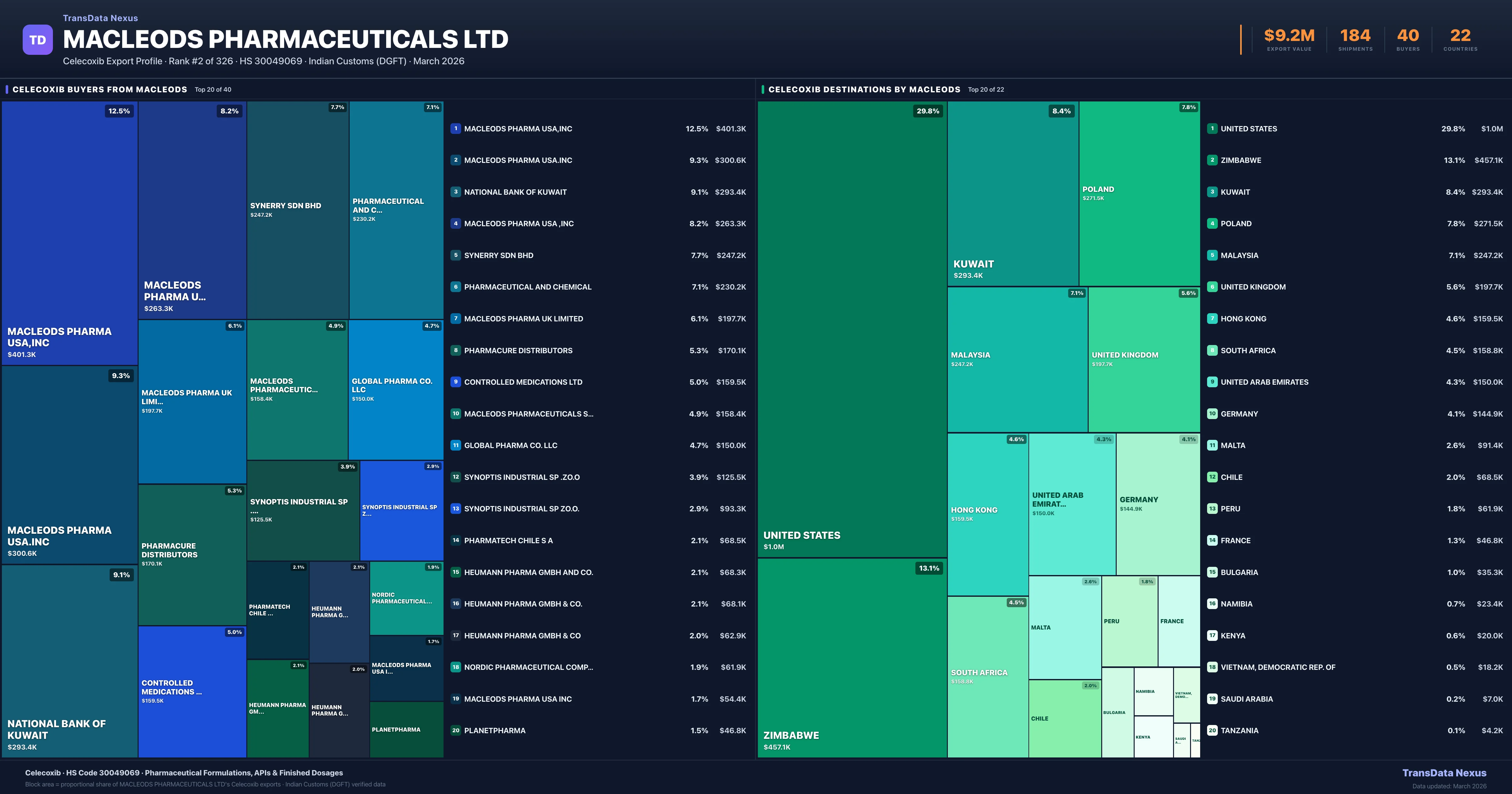 Macleods Pharmaceuticals Ltd — Celecoxib Export Profile: Buyers & Destinations
