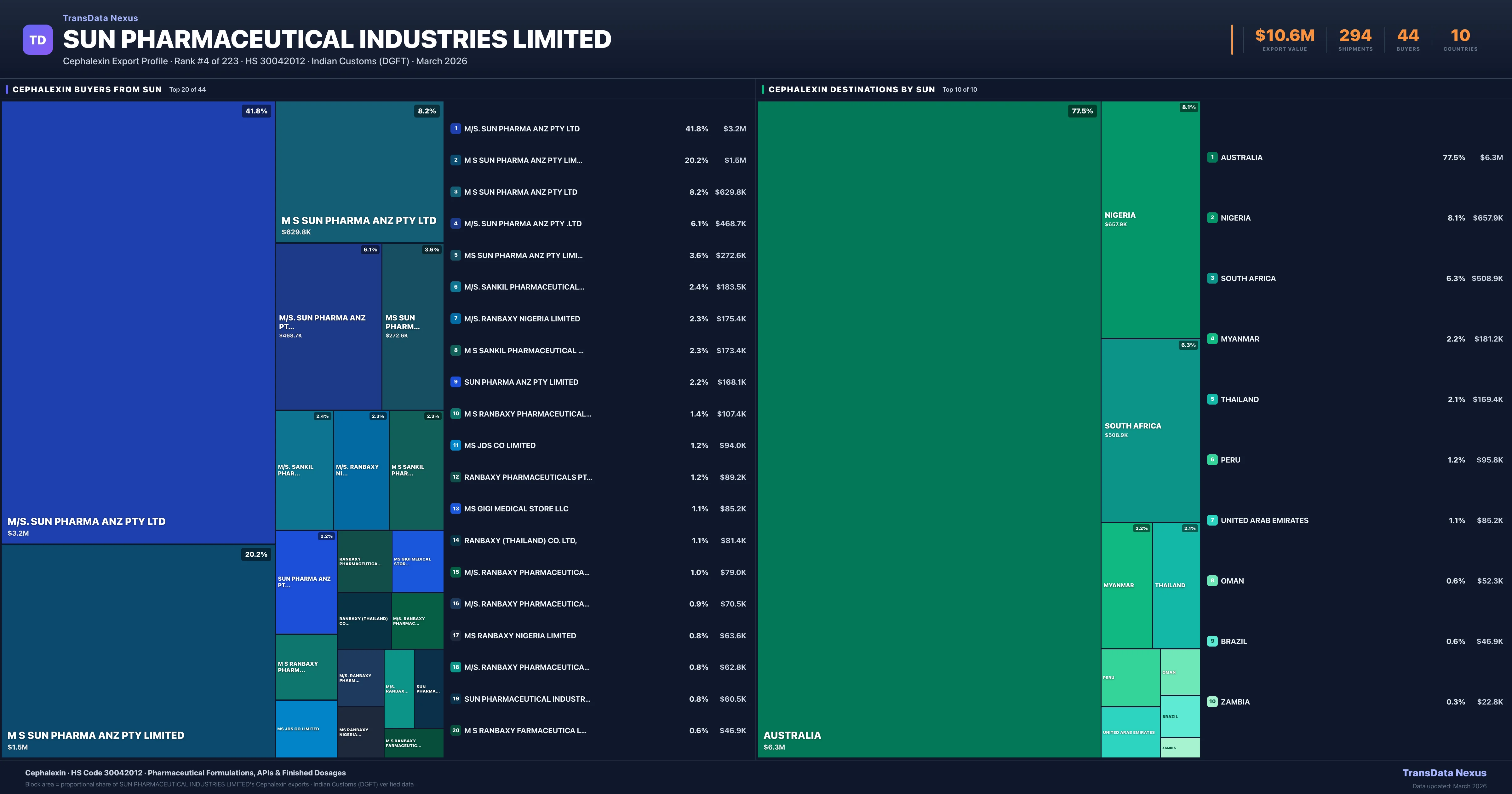 SUN Pharmaceutical Industries Limited — Cephalexin Export Profile: Buyers & Destinations