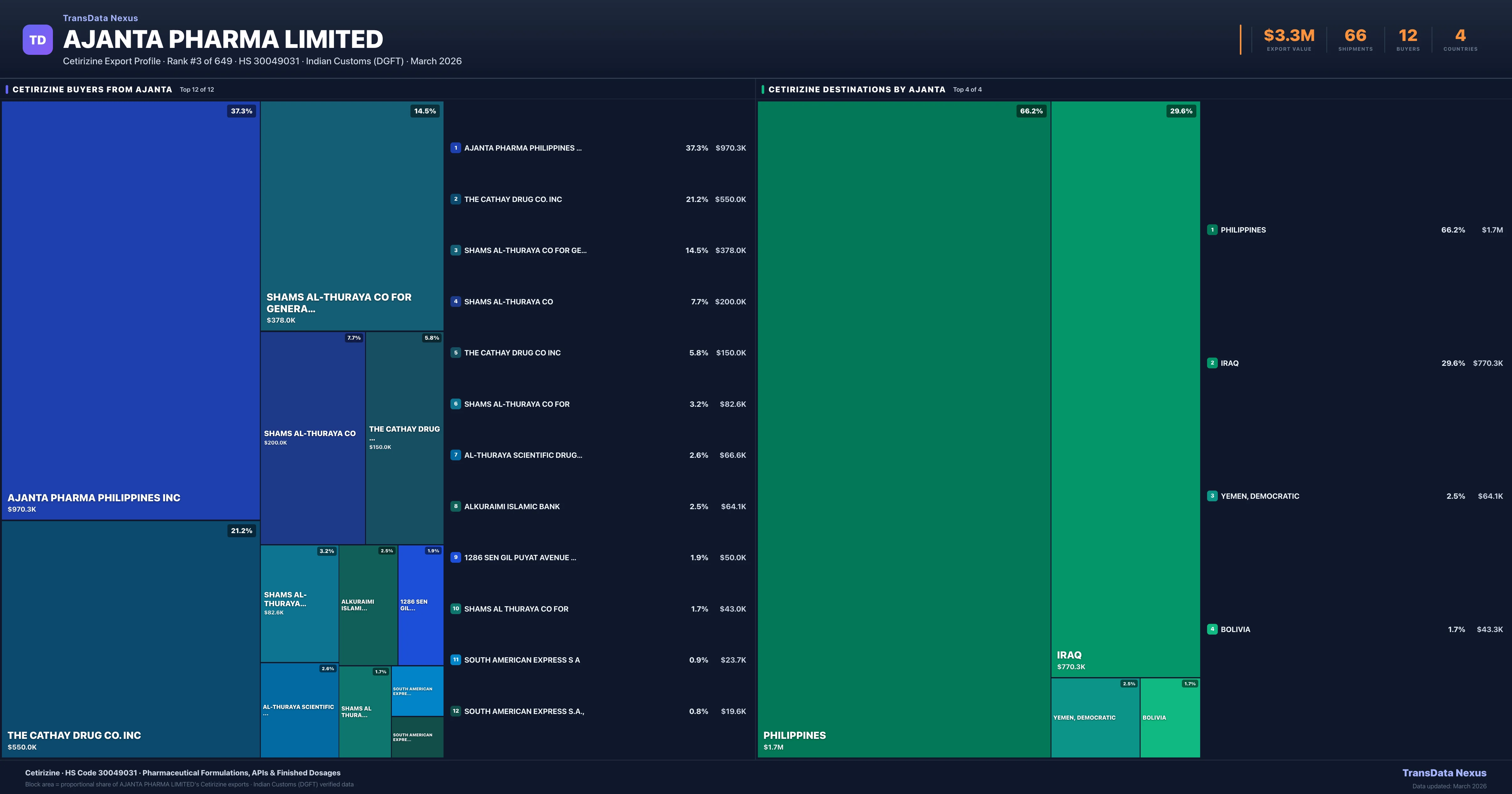 Ajanta Pharma Limited — Cetirizine Export Profile: Buyers & Destinations
