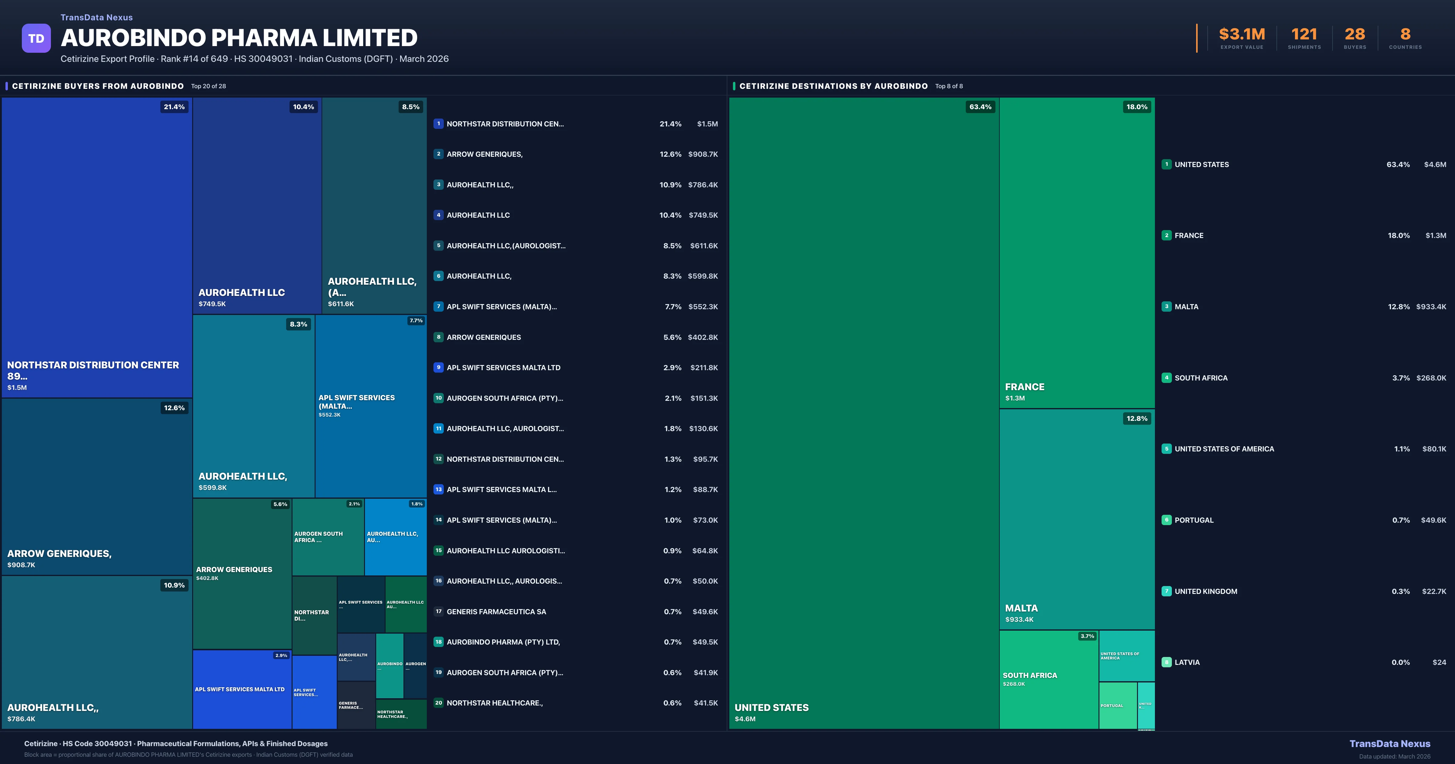 Aurobindo Pharma Limited β Cetirizine Export Profile: Buyers & Destinations
