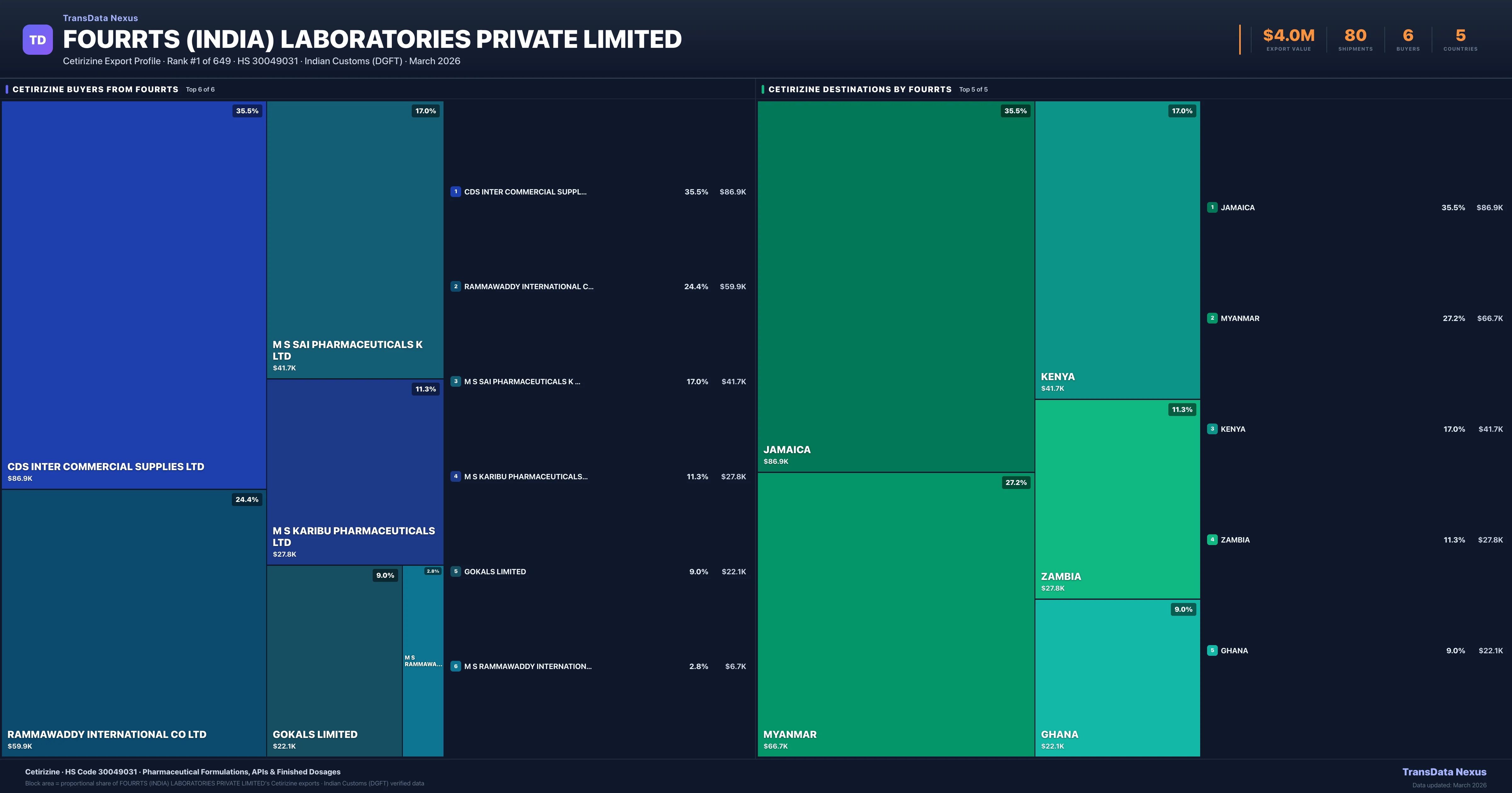 Fourrts (india) Laboratories Private Limited — Cetirizine Export Profile: Buyers & Destinations
