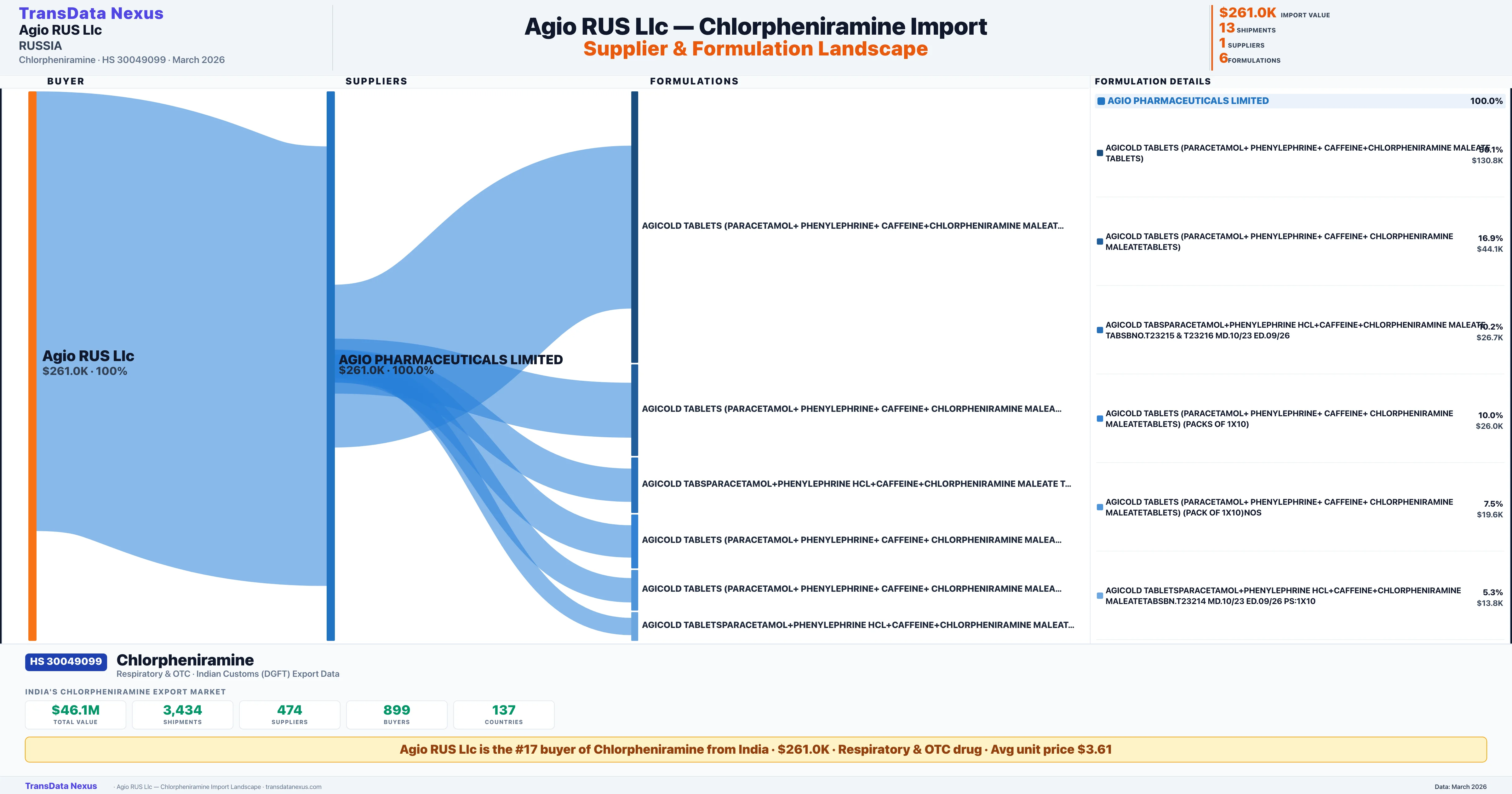 AGIO RUS LLC β Chlorpheniramine Import Profile: Suppliers, Formulations & Sources