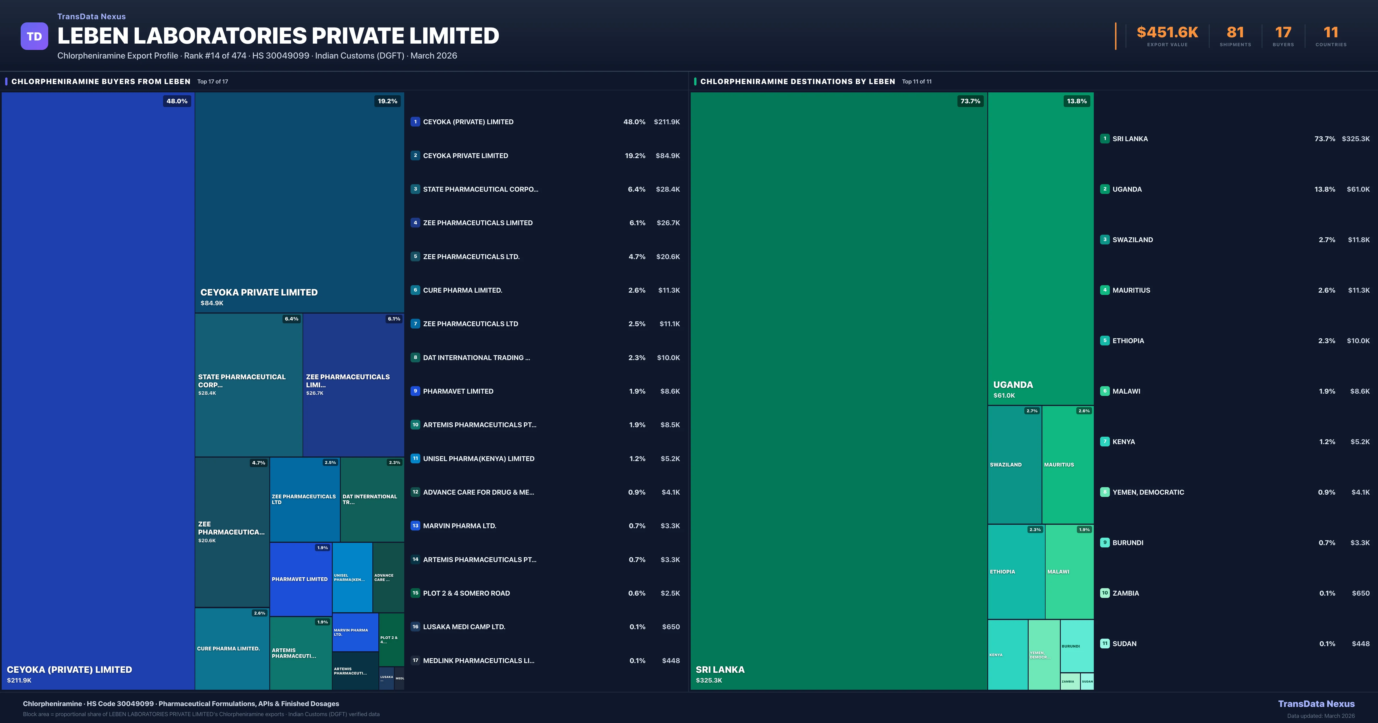 Leben Laboratories Private Limited β Chlorpheniramine Export Profile: Buyers & Destinations
