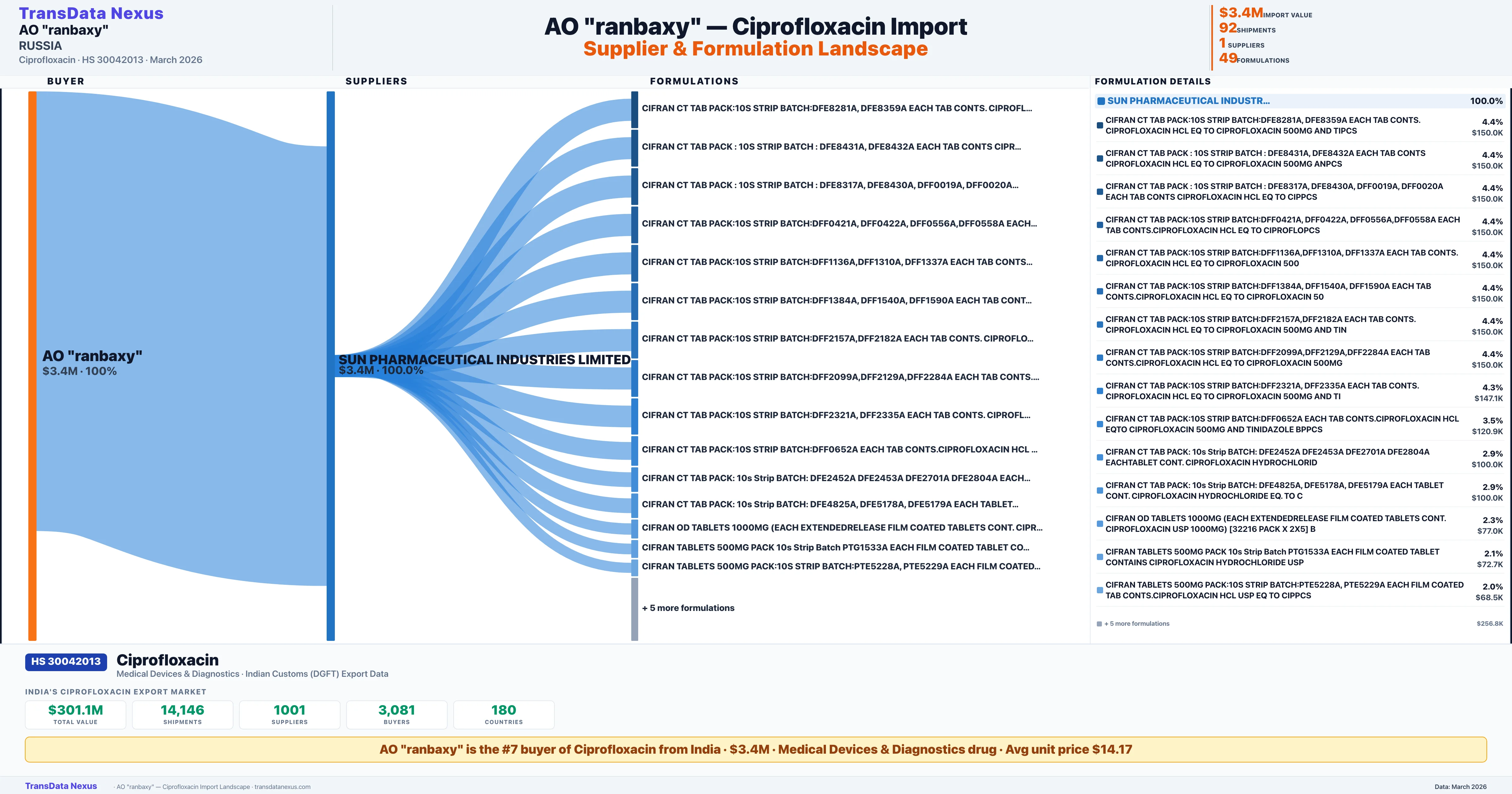 AO RANBAXY β Ciprofloxacin Import Profile: Suppliers, Formulations & Sources