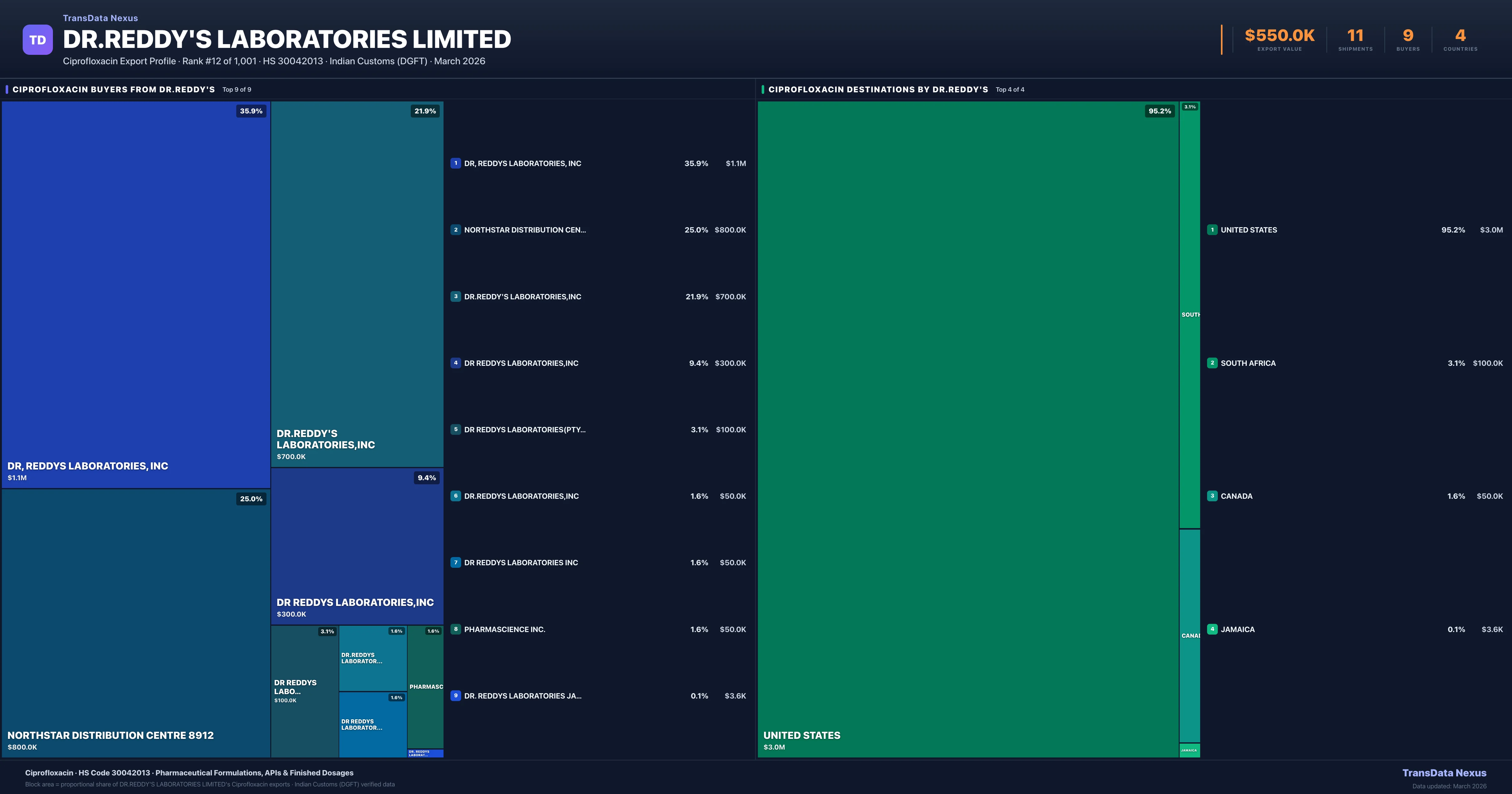 DR Reddy S Laboratories Limited — Ciprofloxacin Export Profile: Buyers & Destinations