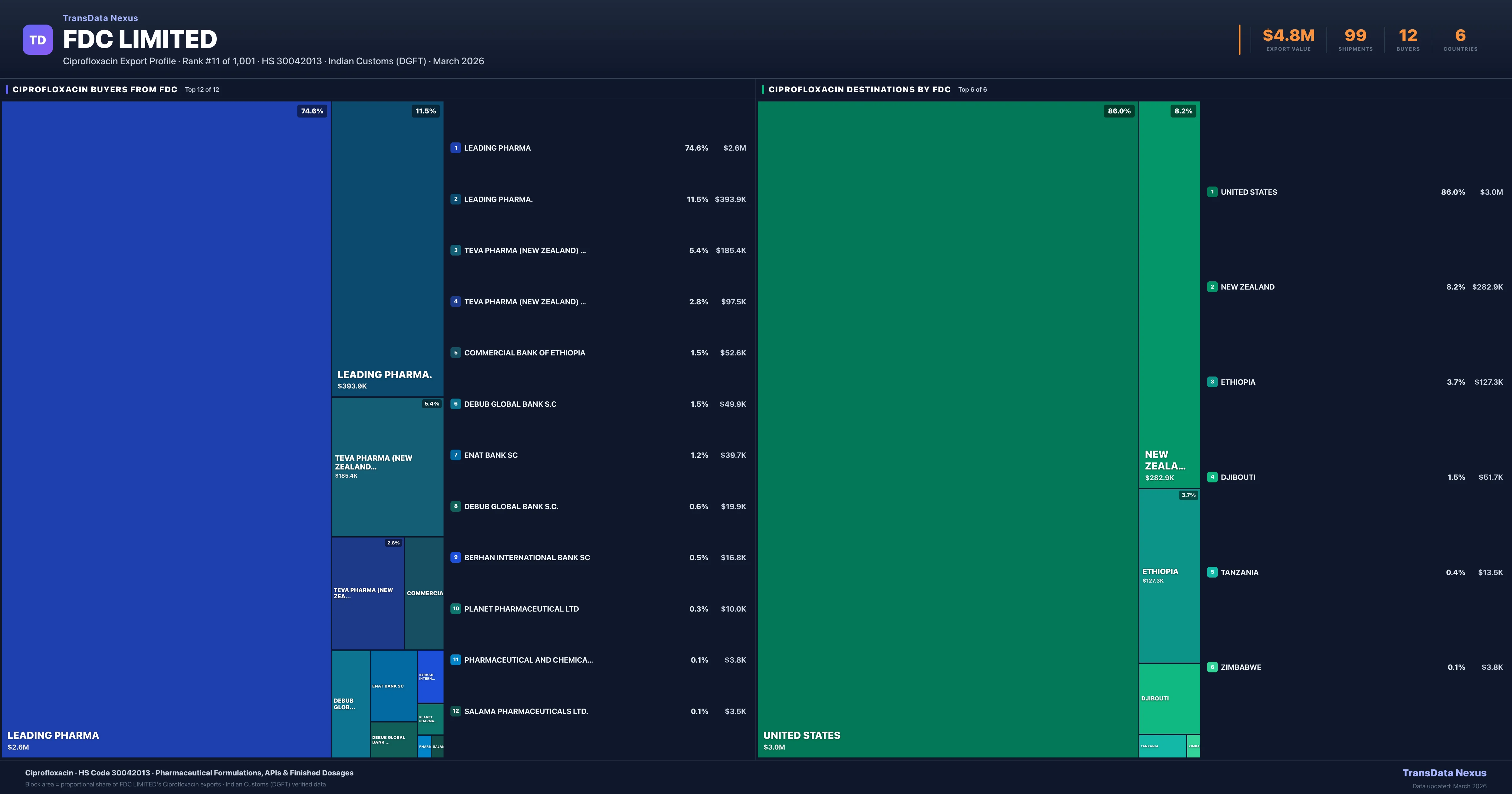 FDC Limited — Ciprofloxacin Export Profile: Buyers & Destinations
