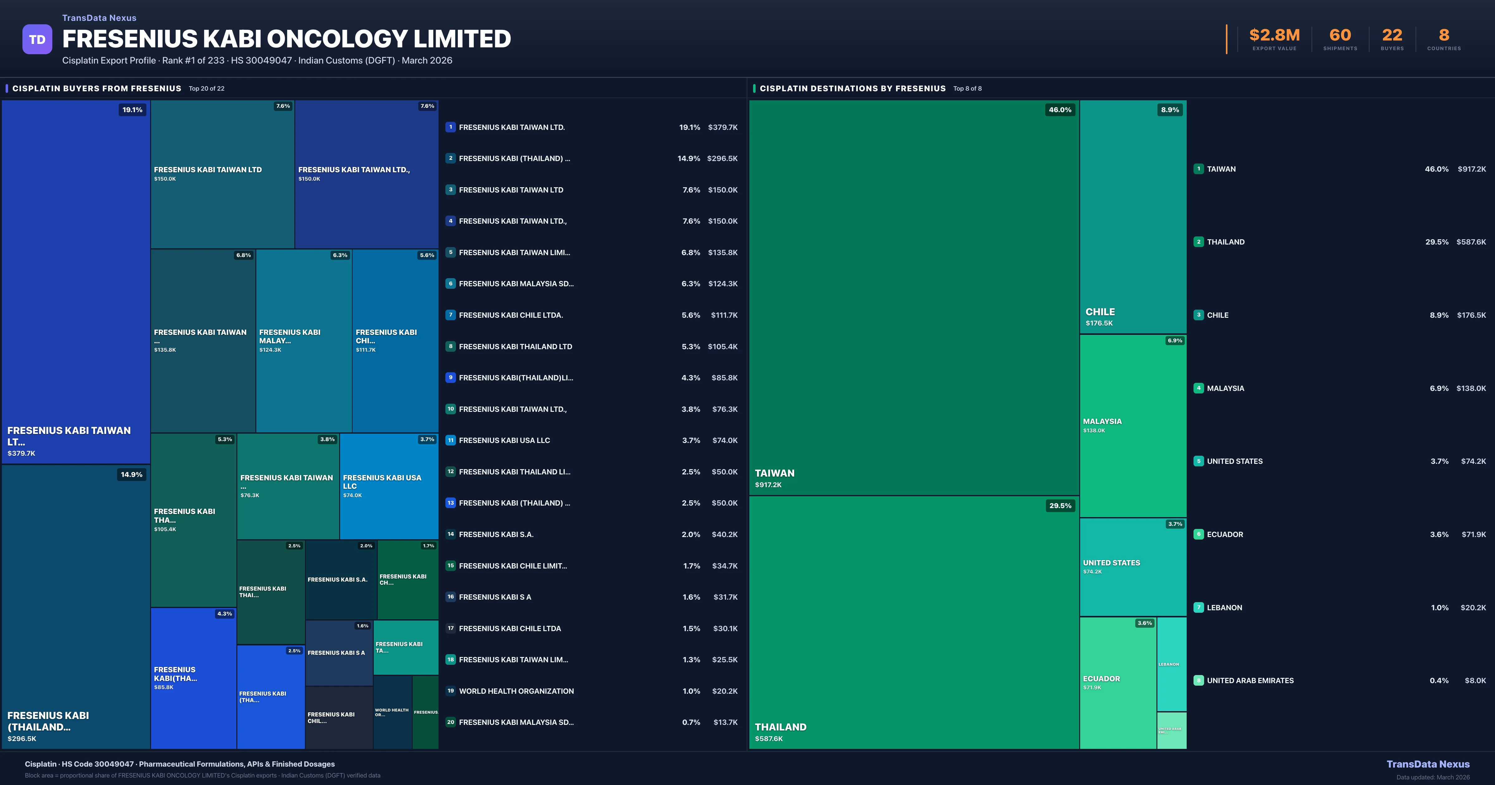 Fresenius Kabi Oncology Limited — Cisplatin Export Profile: Buyers & Destinations