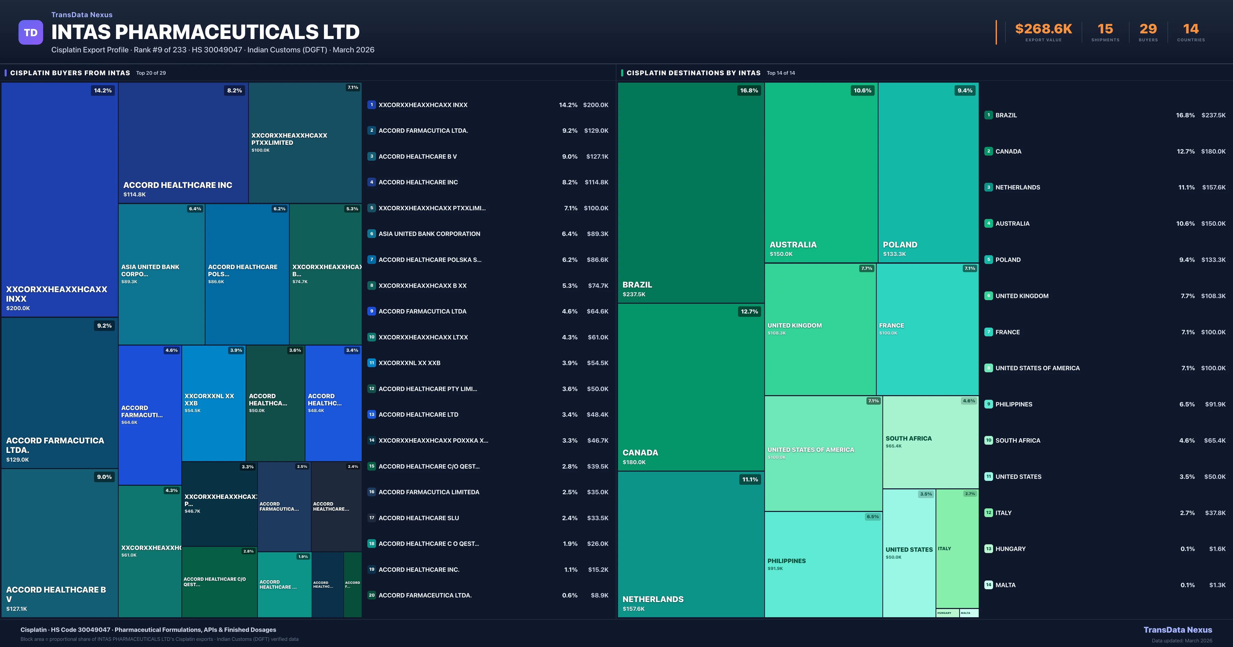 Intas Pharmaceuticals Ltd — Cisplatin Export Profile: Buyers & Destinations