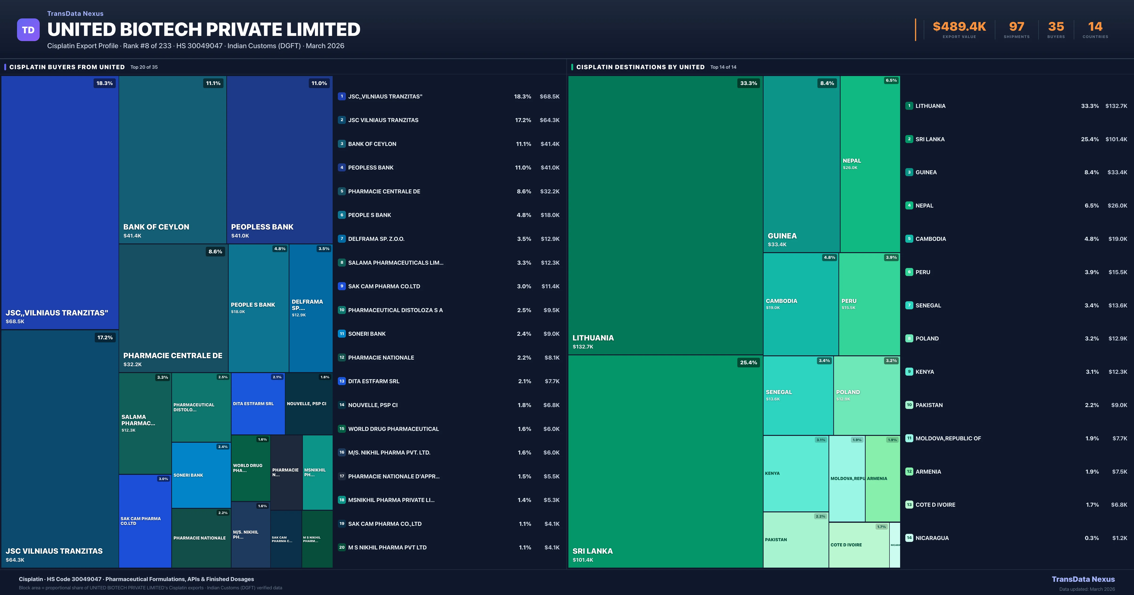 United Biotech Private Limited — Cisplatin Export Profile: Buyers & Destinations