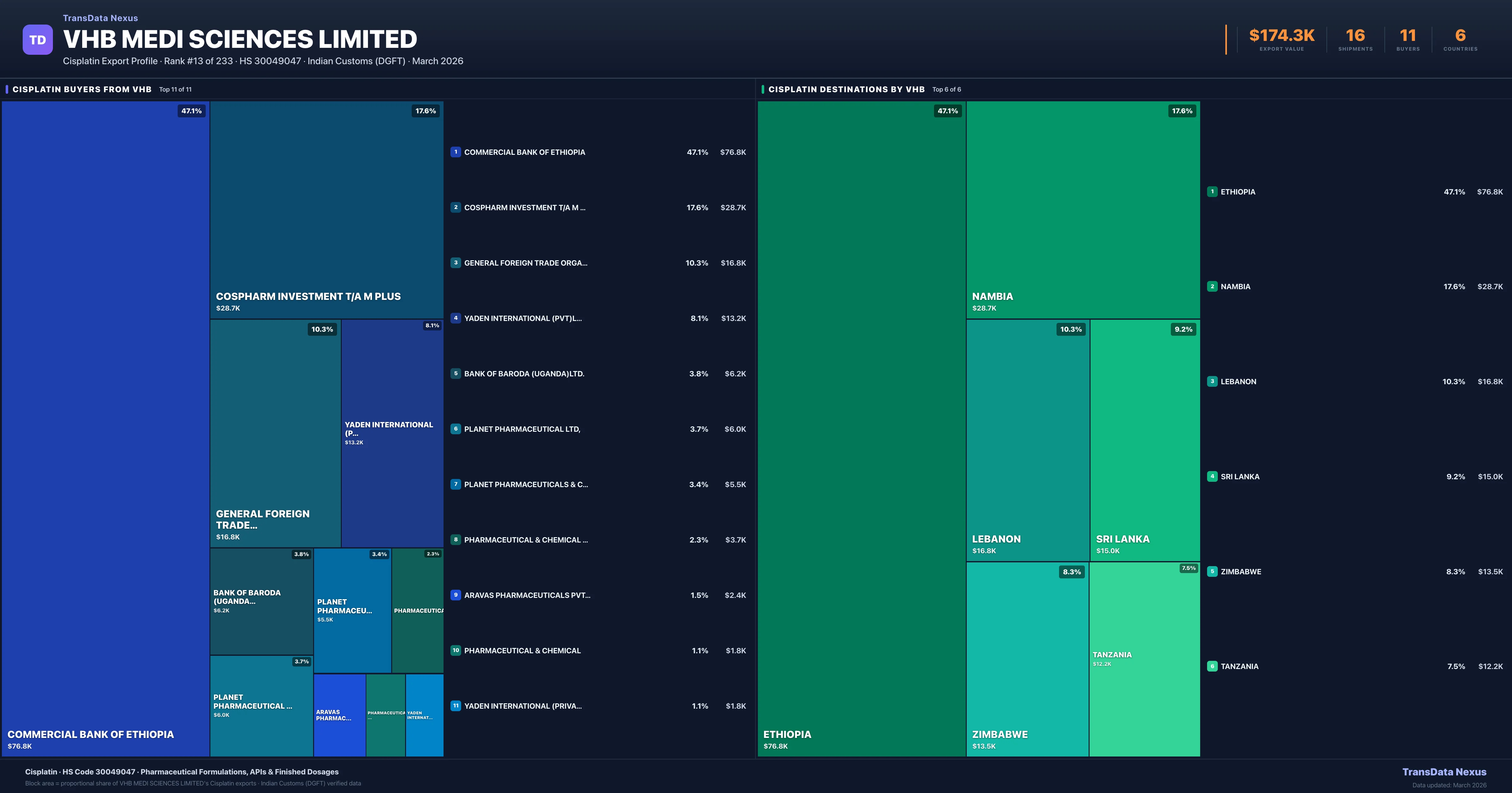 VHB Medi Sciences Limited — Cisplatin Export Profile: Buyers & Destinations