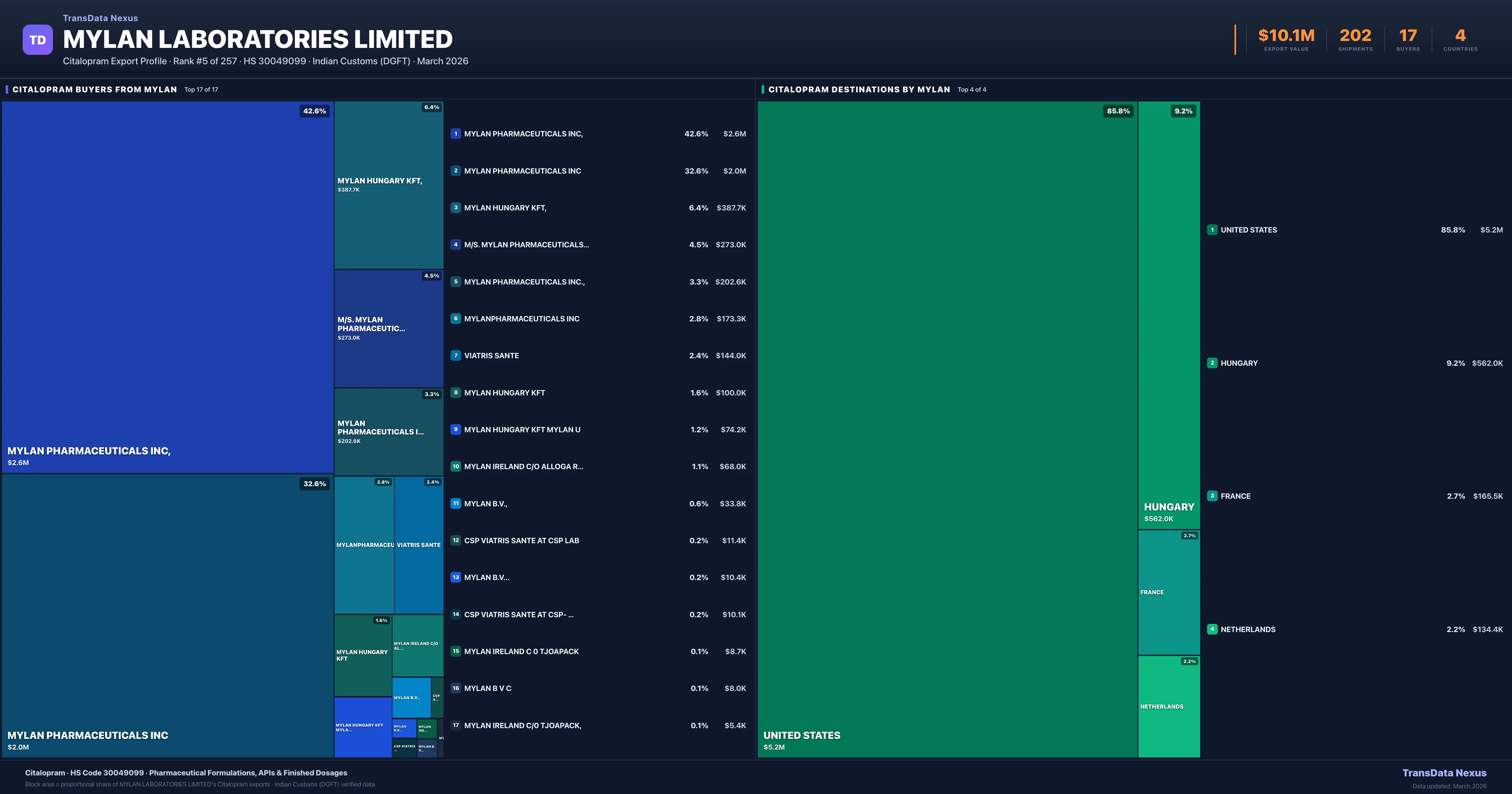 Mylan Laboratories Limited — Citalopram Export Profile: Buyers & Destinations
