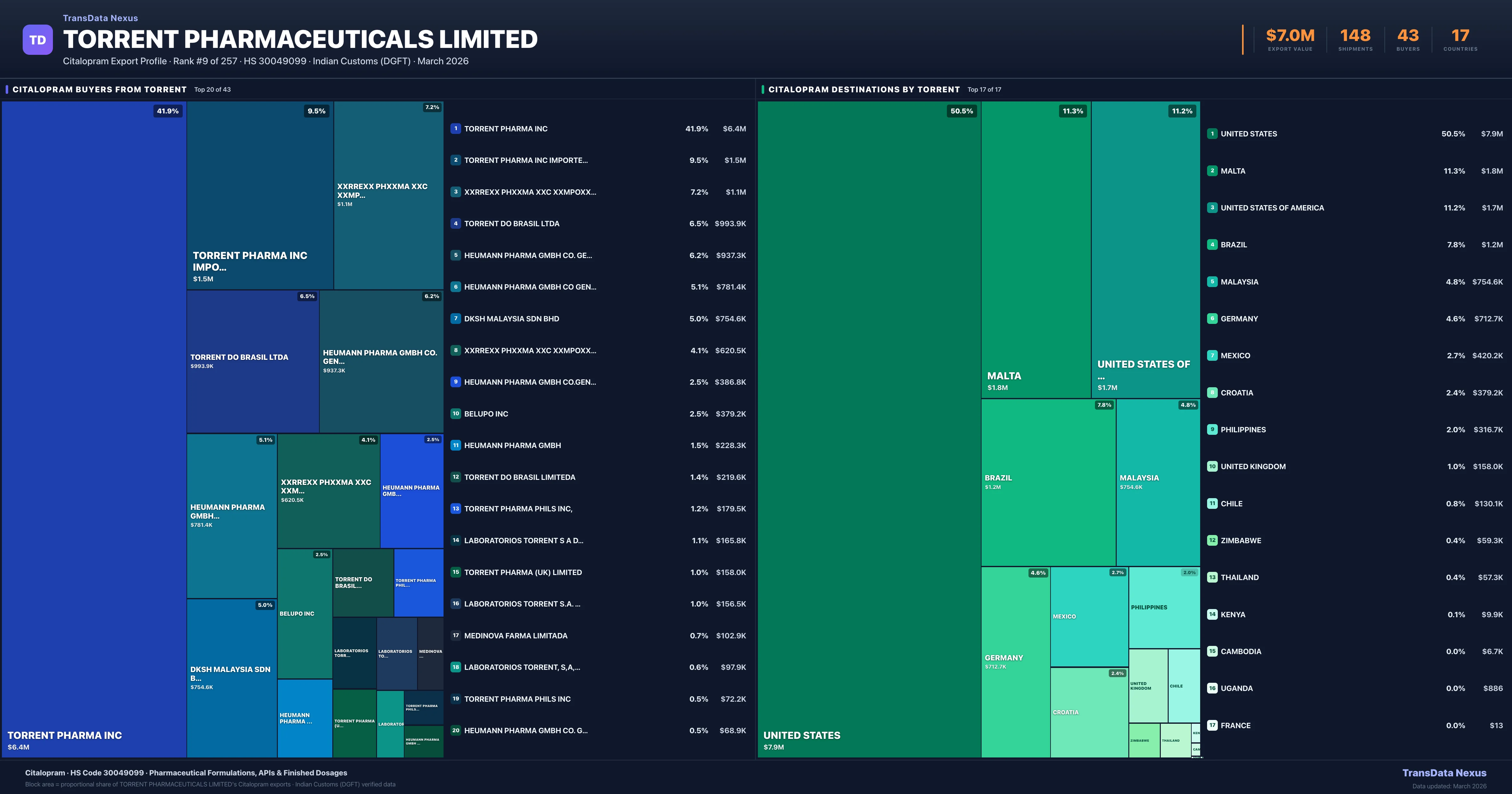 Torrent Pharmaceuticals Limited — Citalopram Export Profile: Buyers & Destinations