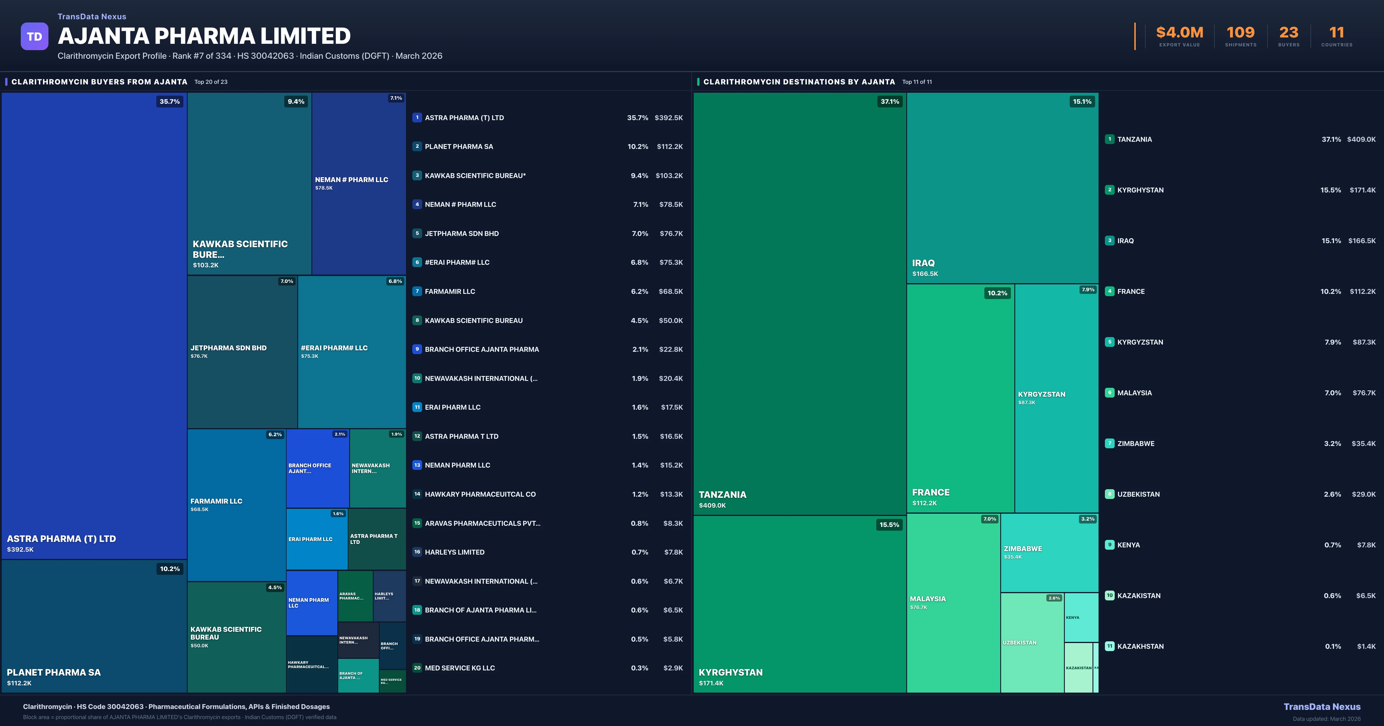 Ajanta Pharma Limited — Clarithromycin Export Profile: Buyers & Destinations